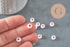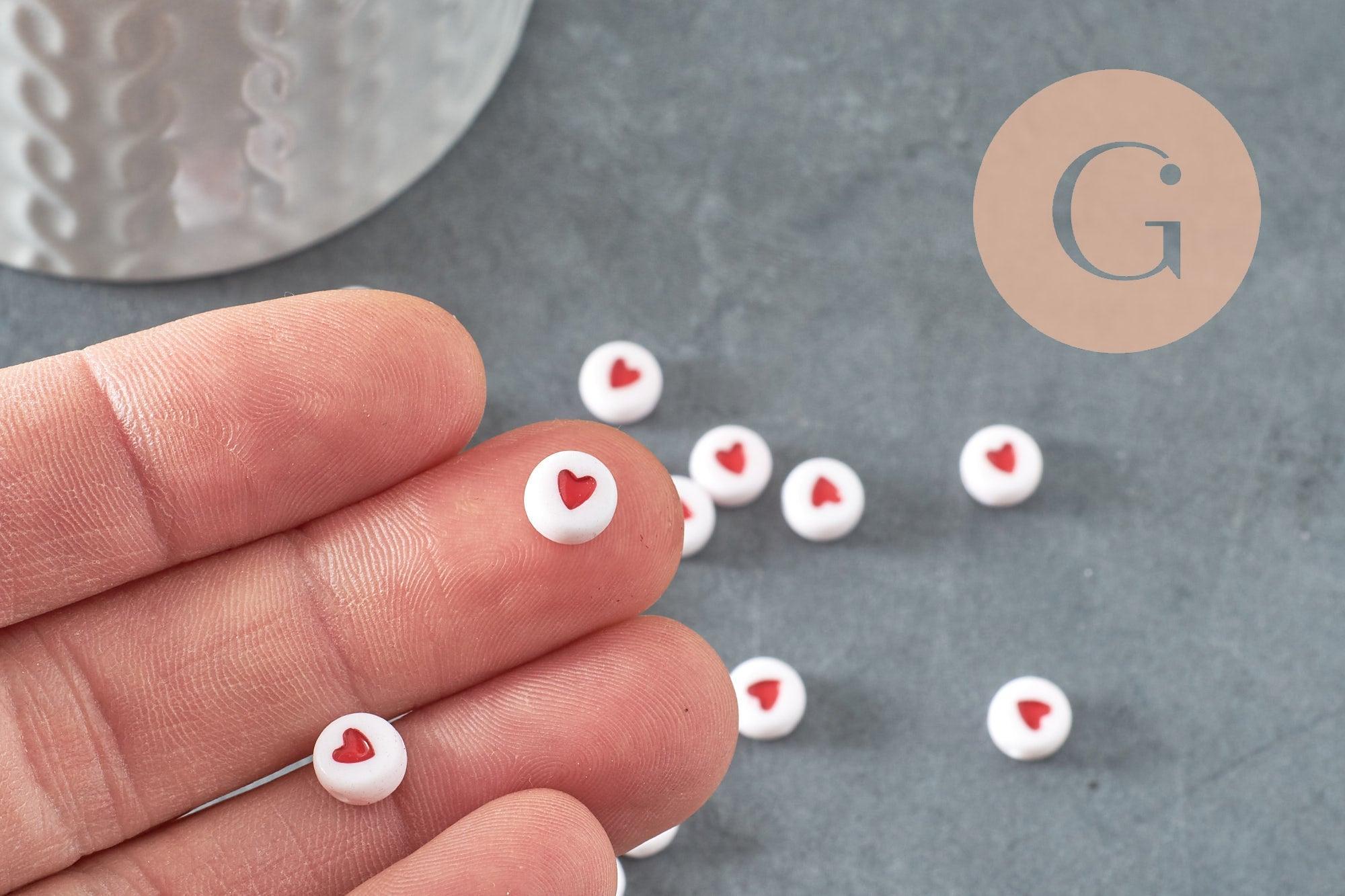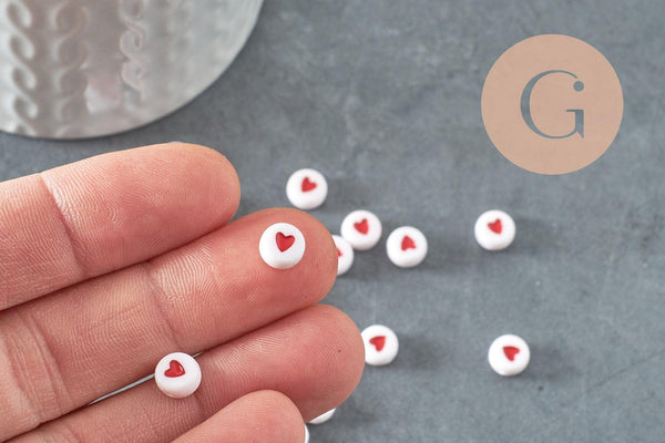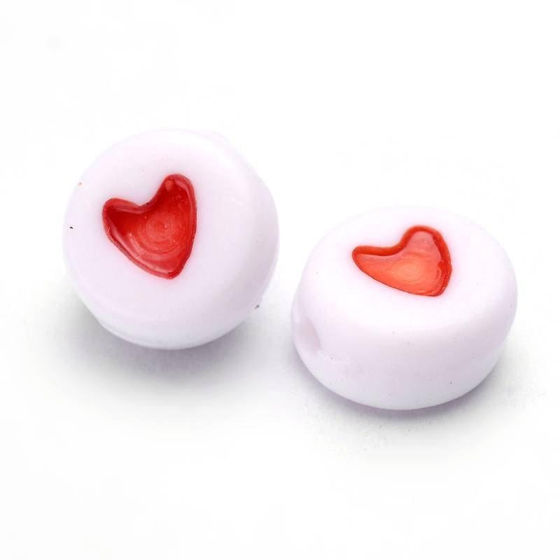 Pack of 10 grams of white plastic disc beads with a red heart , plastic beads Ideal for making necklaces or bracelets with messages