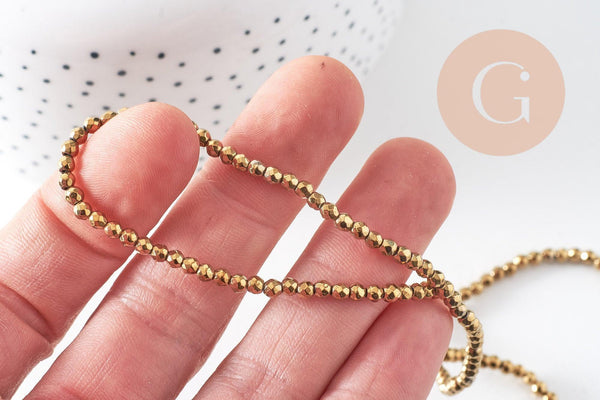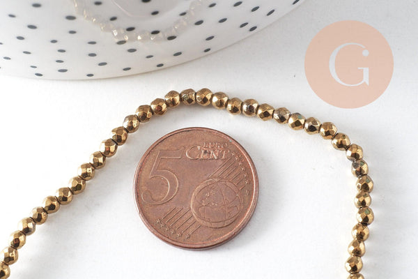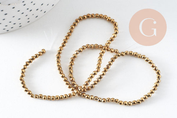 Perles ronde facettée hématite synthétique dorée 3mm, fil de 40cm x1 (G3683)