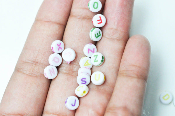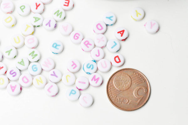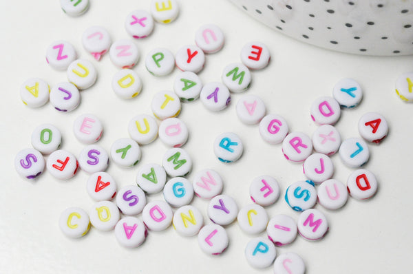 Create meaningful jewelry with these round white plastic alphabet beads, adorned with colorful letters! Perfect for creating sweet nothings, names, or inspirational messages on your DIY bracelets and necklaces. DIY...
