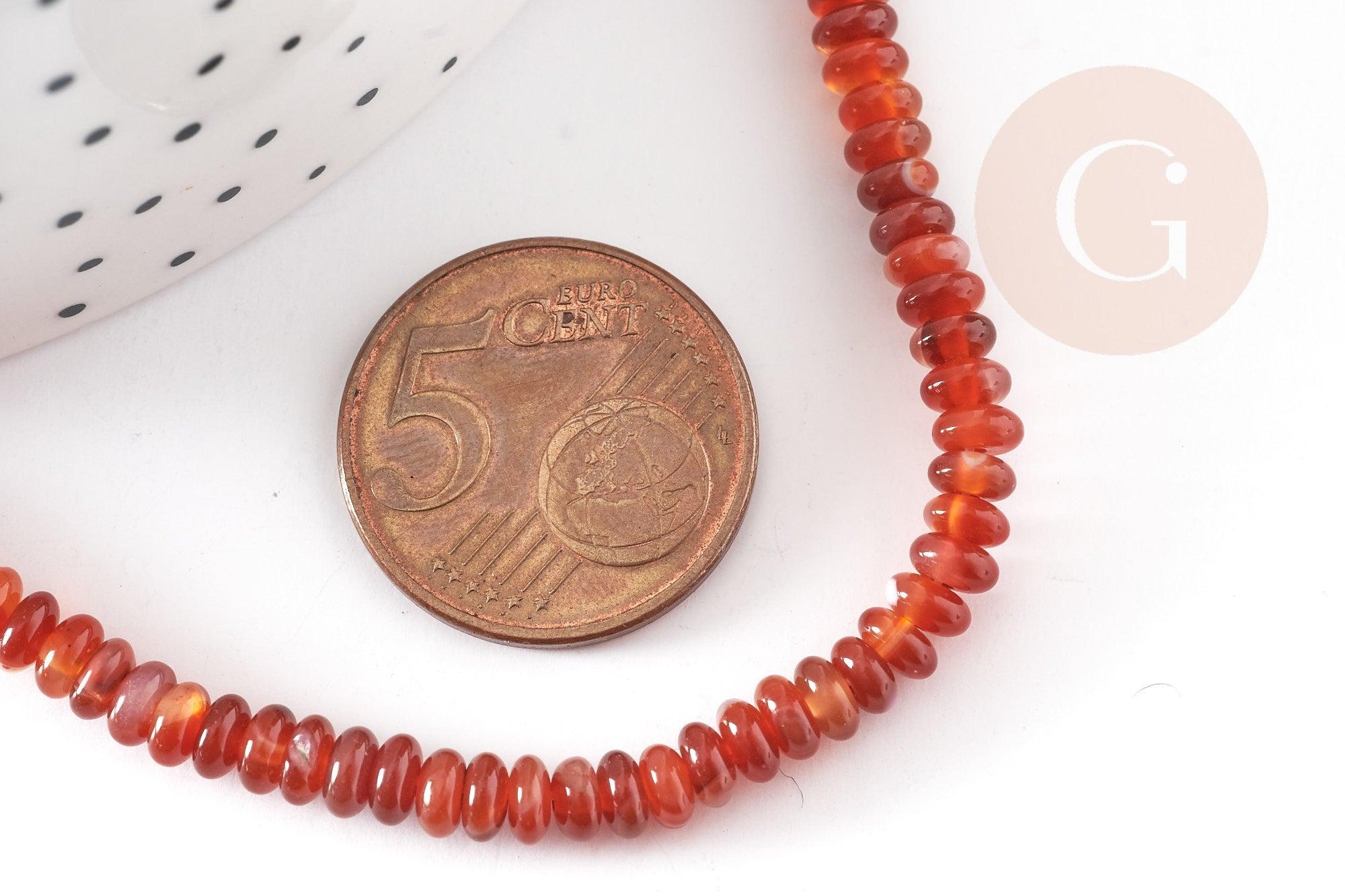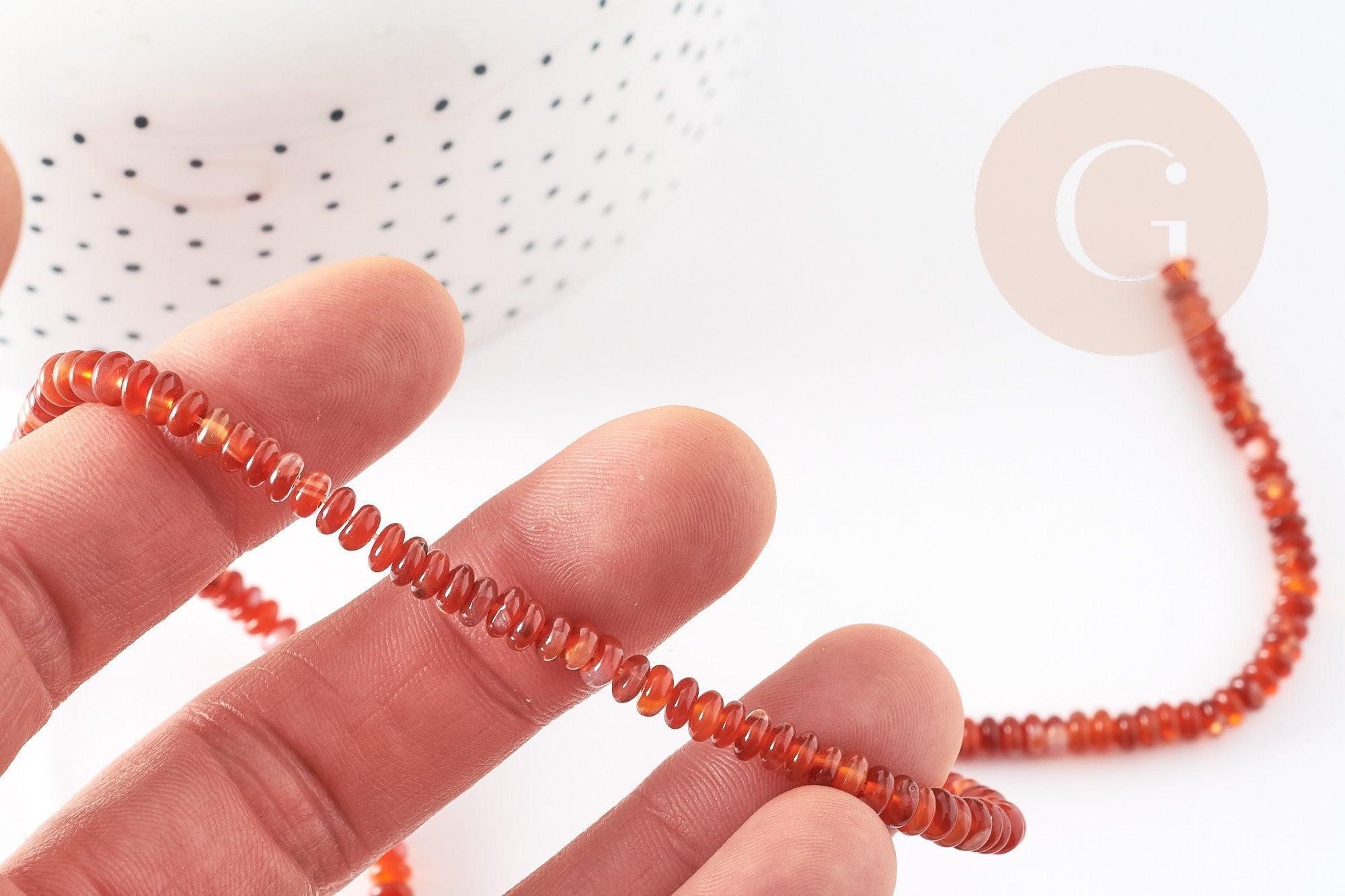 Perle rondelle cornaline orange naturelle lisse, pierre naturelle, 4-4.5mm, fil de 38cm, x1 (G4547)