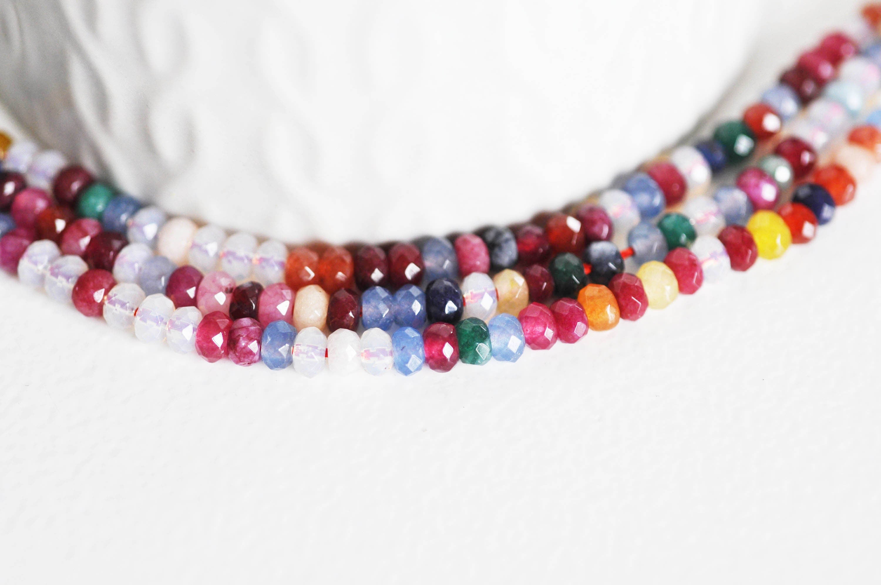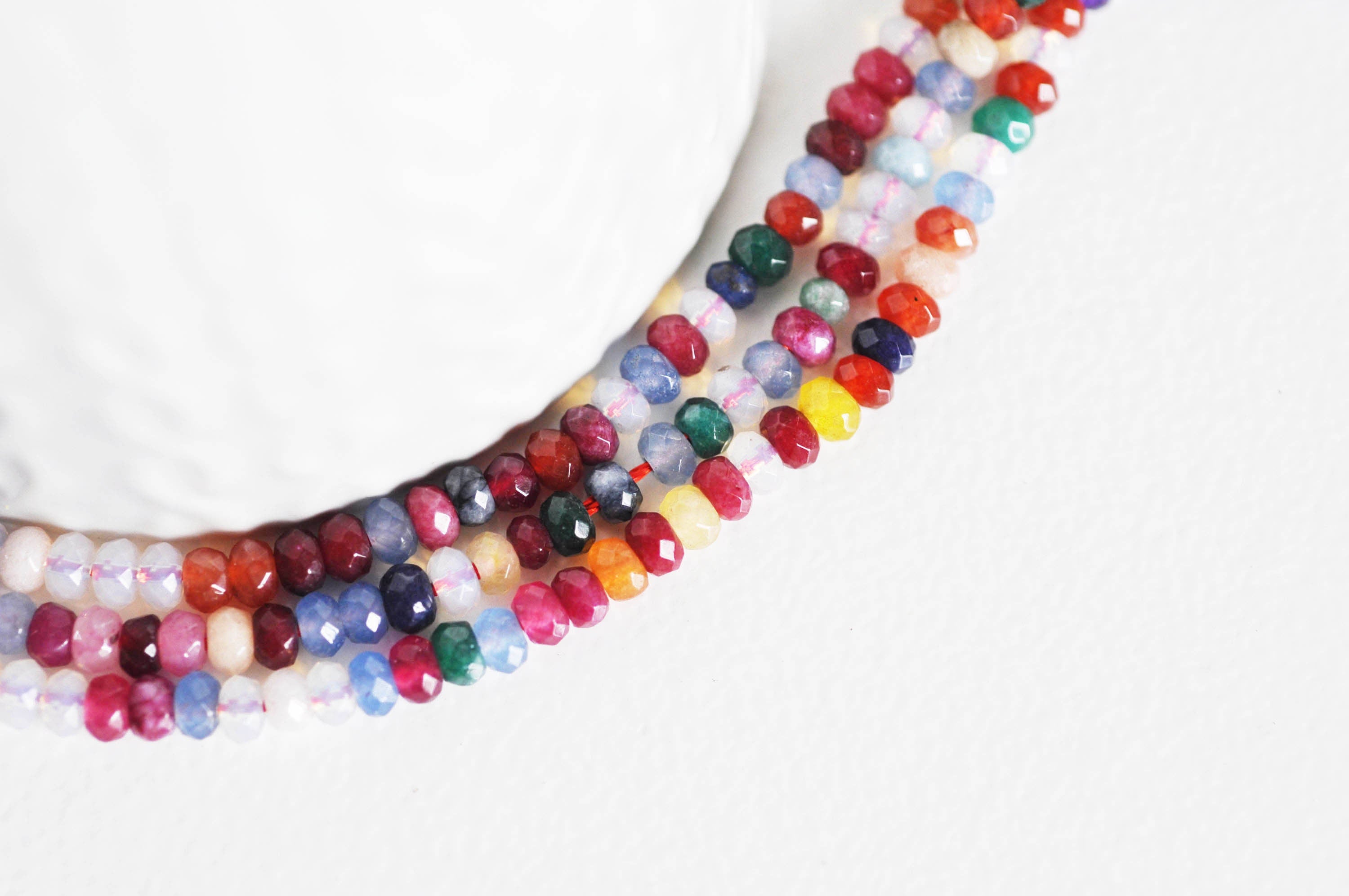 Adopt these few multicolored natural jade rondelle stones to create many DIY costume jewelry .