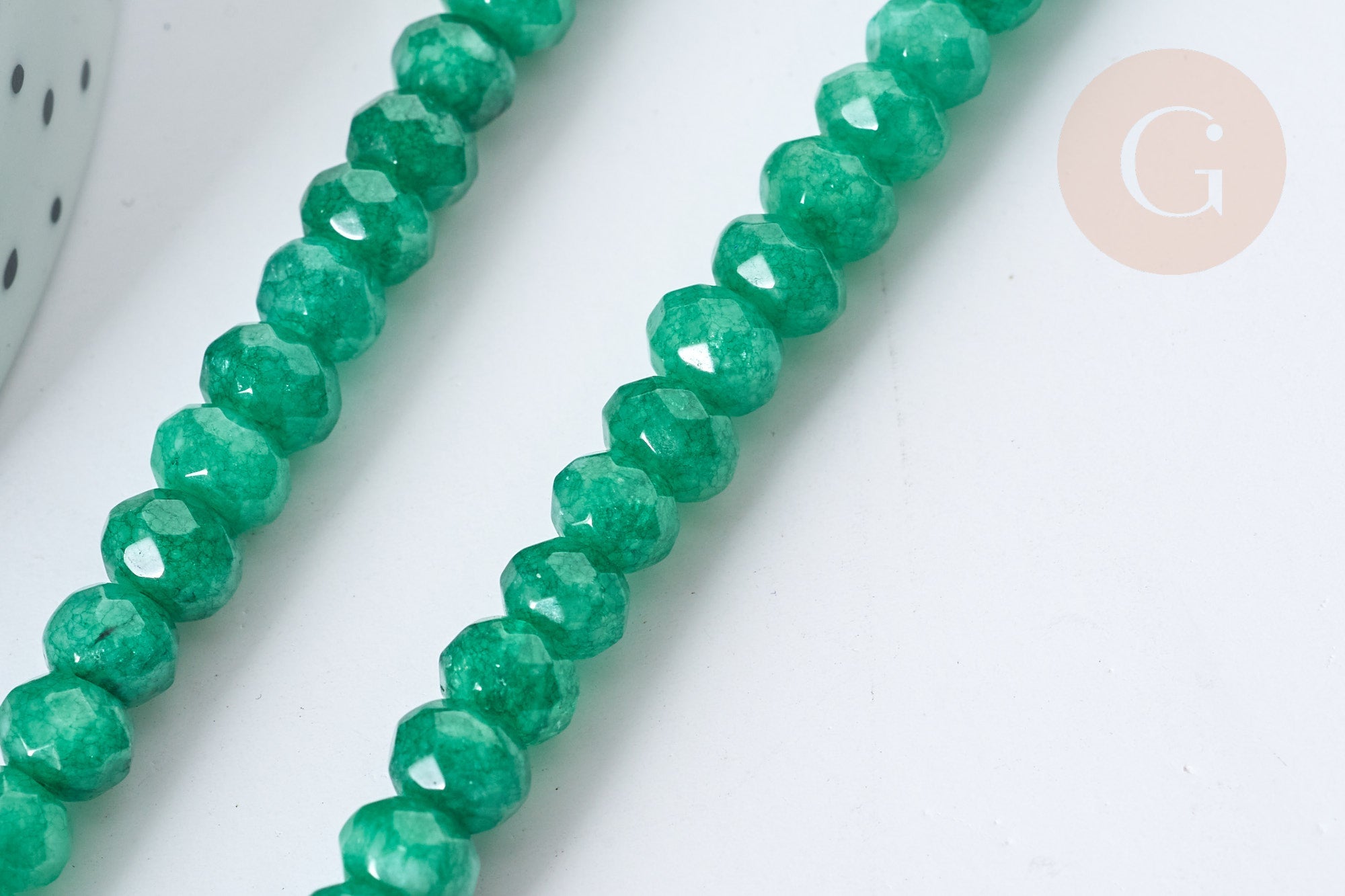 Adopt these faceted rondelle beads in colored natural jade , they will be ideal for creating DIY costume jewelry unique and original.