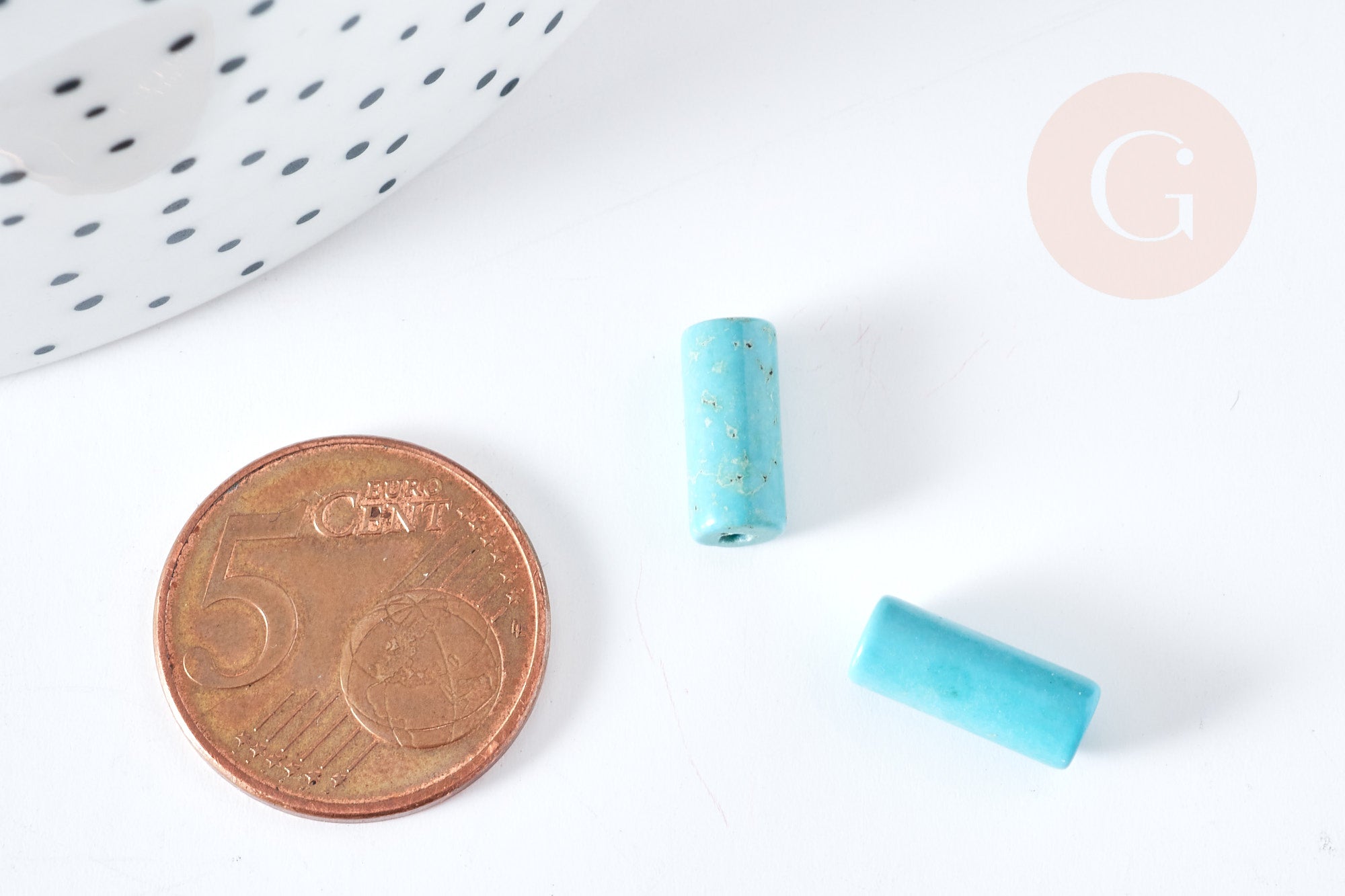 turquoise howlite tube beads, creative supplies, tube beads, howlite, jewelry creation, blue bead, blue howlite, set of 10, 13mm