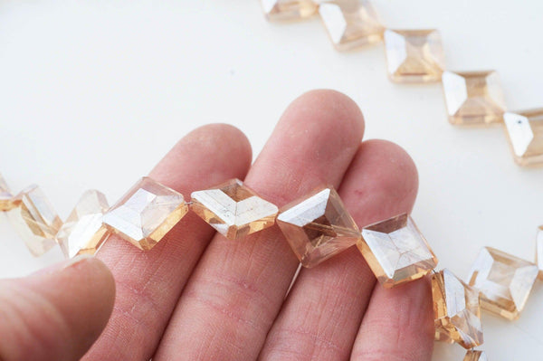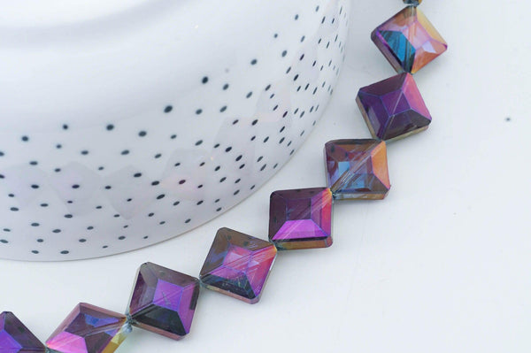 These faceted iridescent glass diamond beads are ideal for creating a number of DIY costume jewelry pieces.