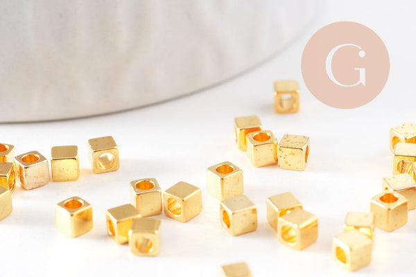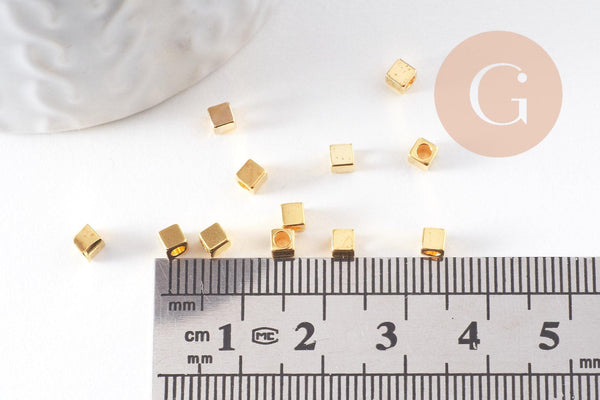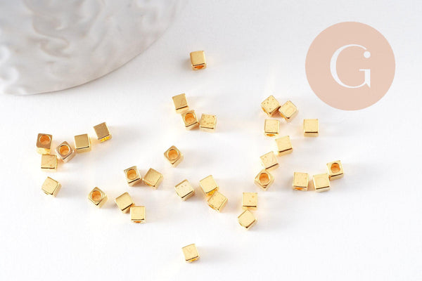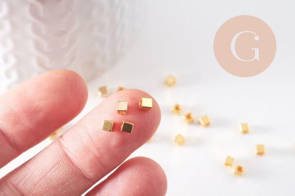Spacer beads s square raw brass, brass pearl, golden pearls, jewelry creation, raw brass, batch of 100, 3mm
