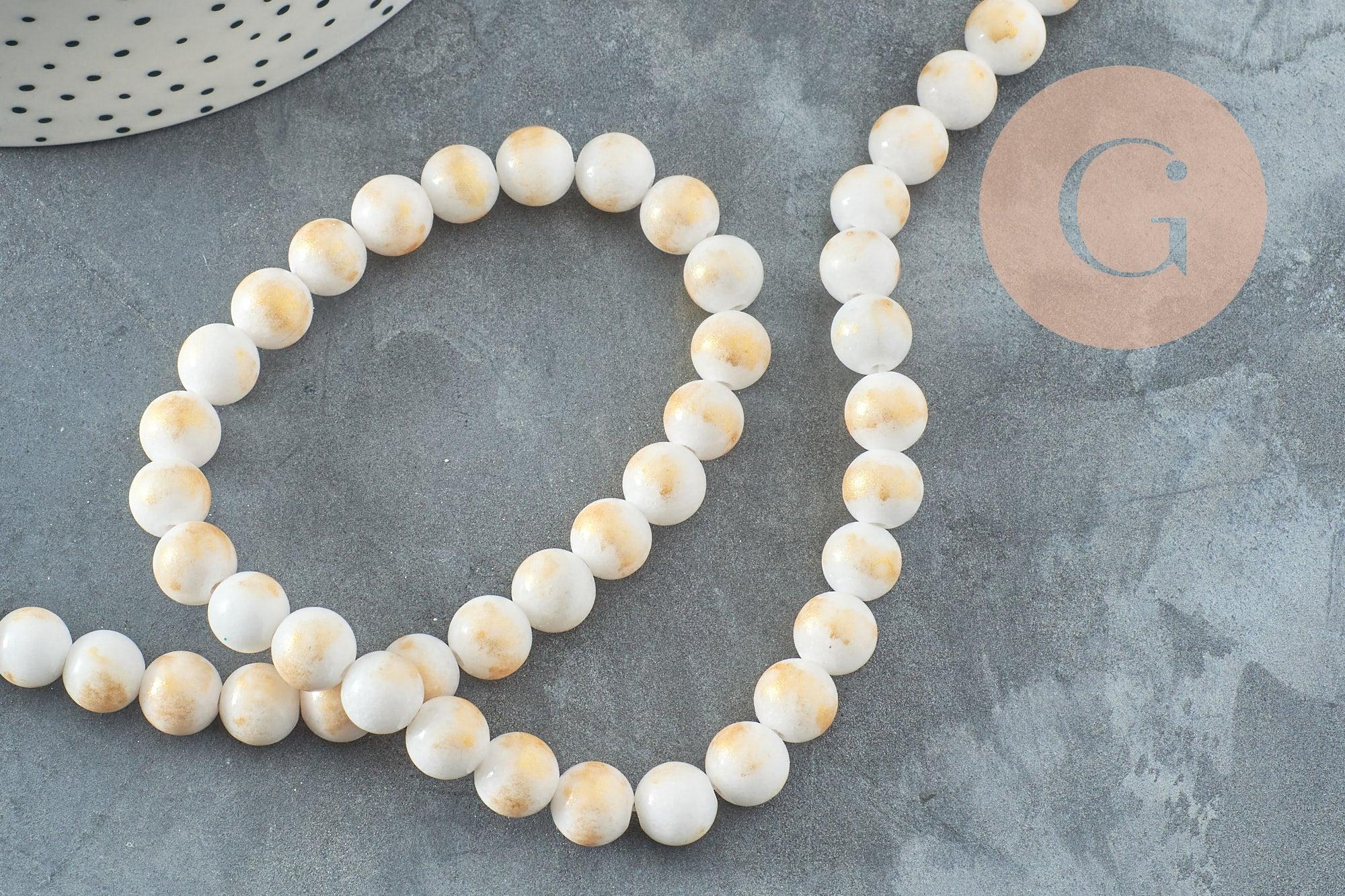 White and gold jade beads, creative supply, round beads, blue mashan jade, natural stone, 8mm, strand of 48 beads