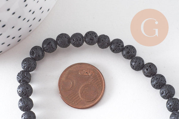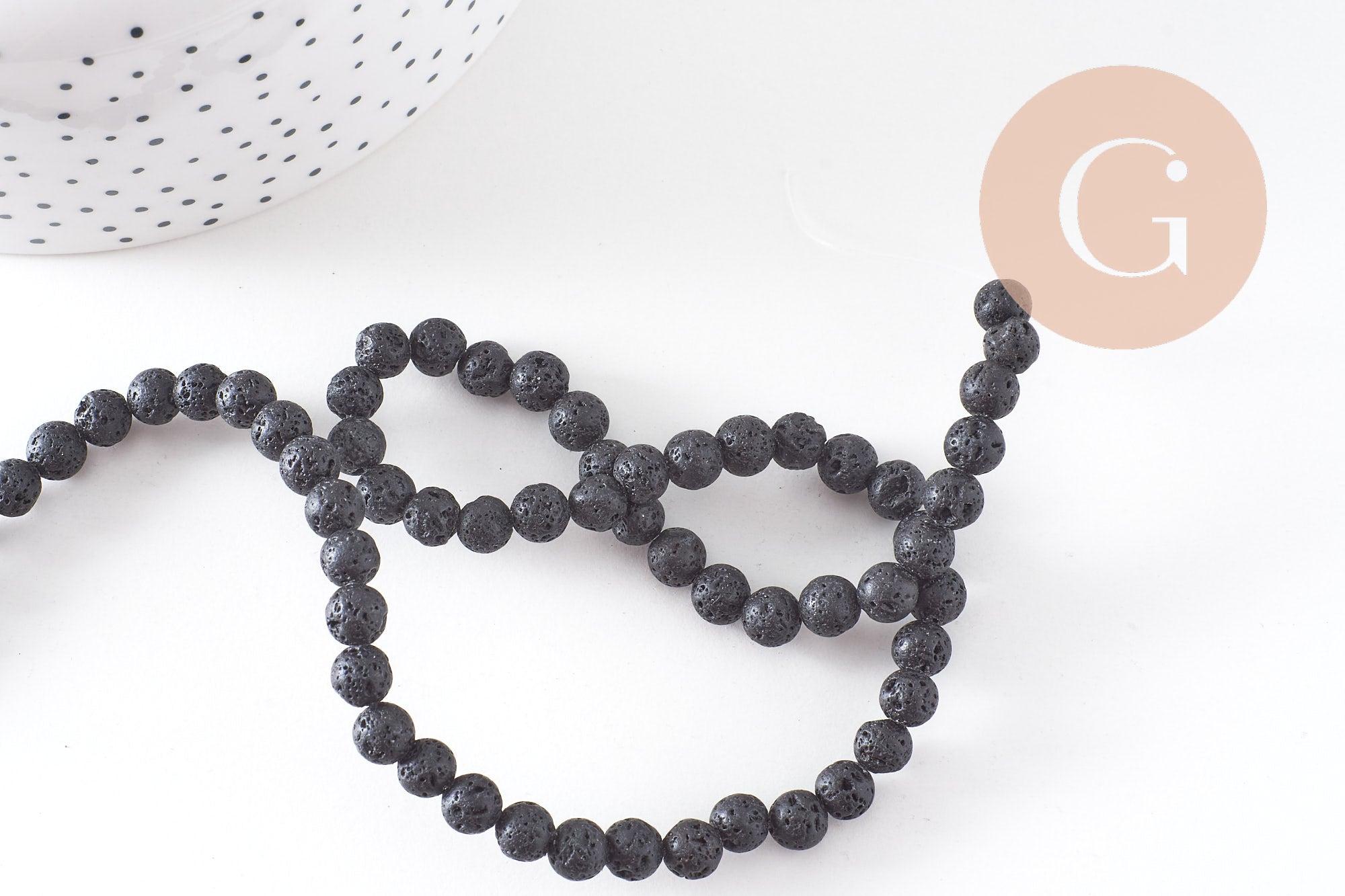 Perle ronde en lave noire naturelle 6mm, x1 fil de 39cm (G1571)