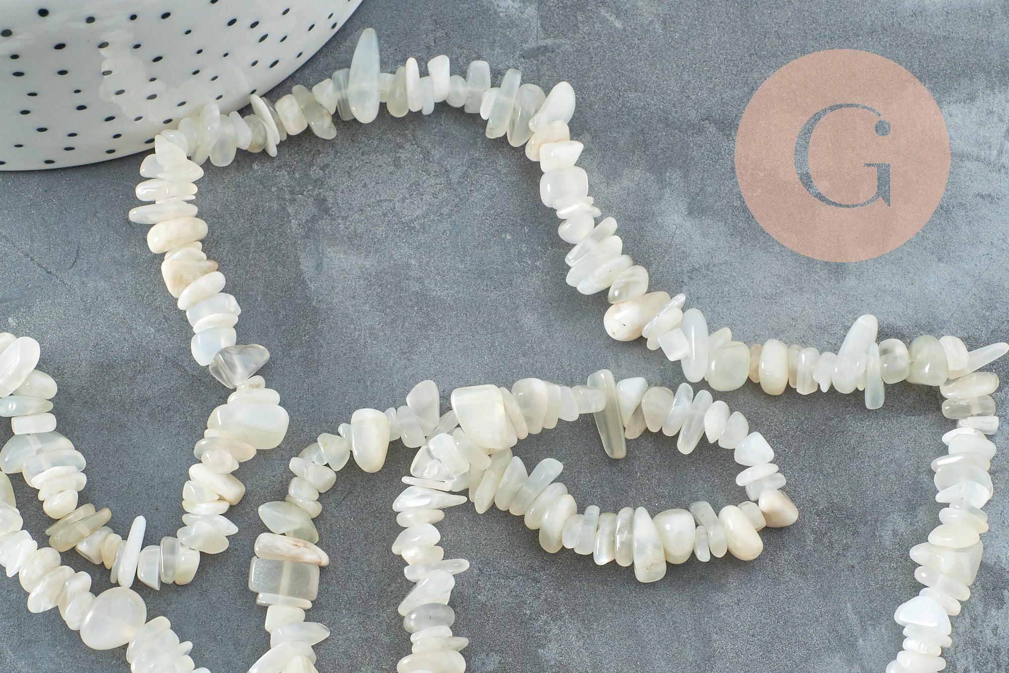 Add softness and light to your creations with these natural moonstone nugget beads . Their white color with iridescent reflections evokes the glow of the moon and brings a mystical touch to your handmade jewelry.