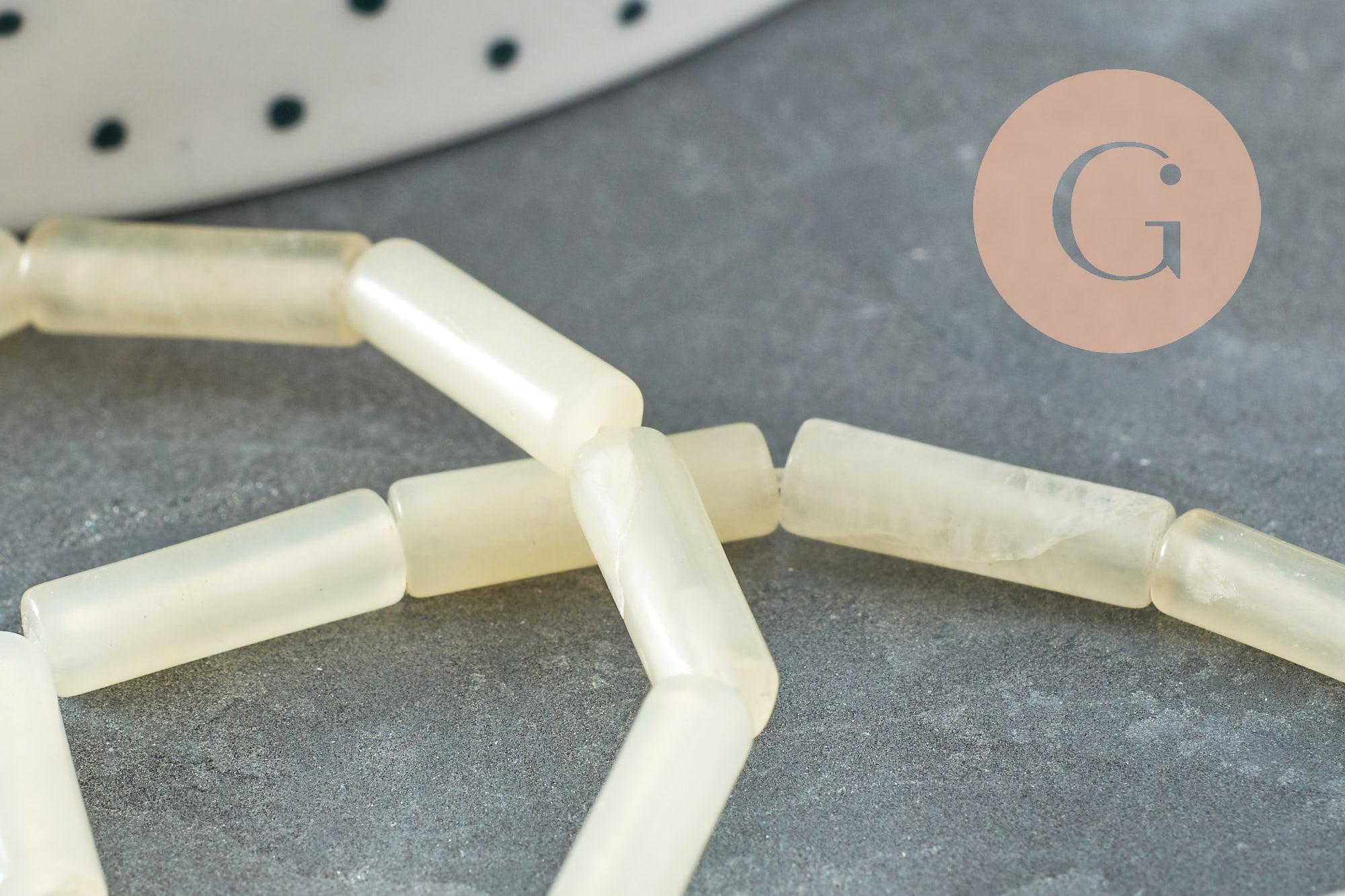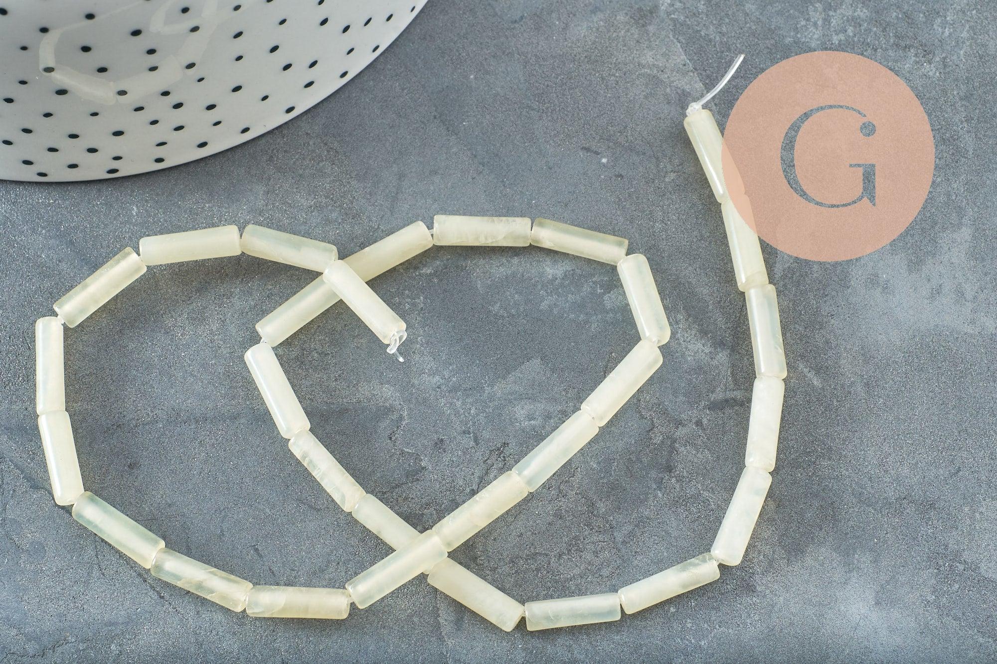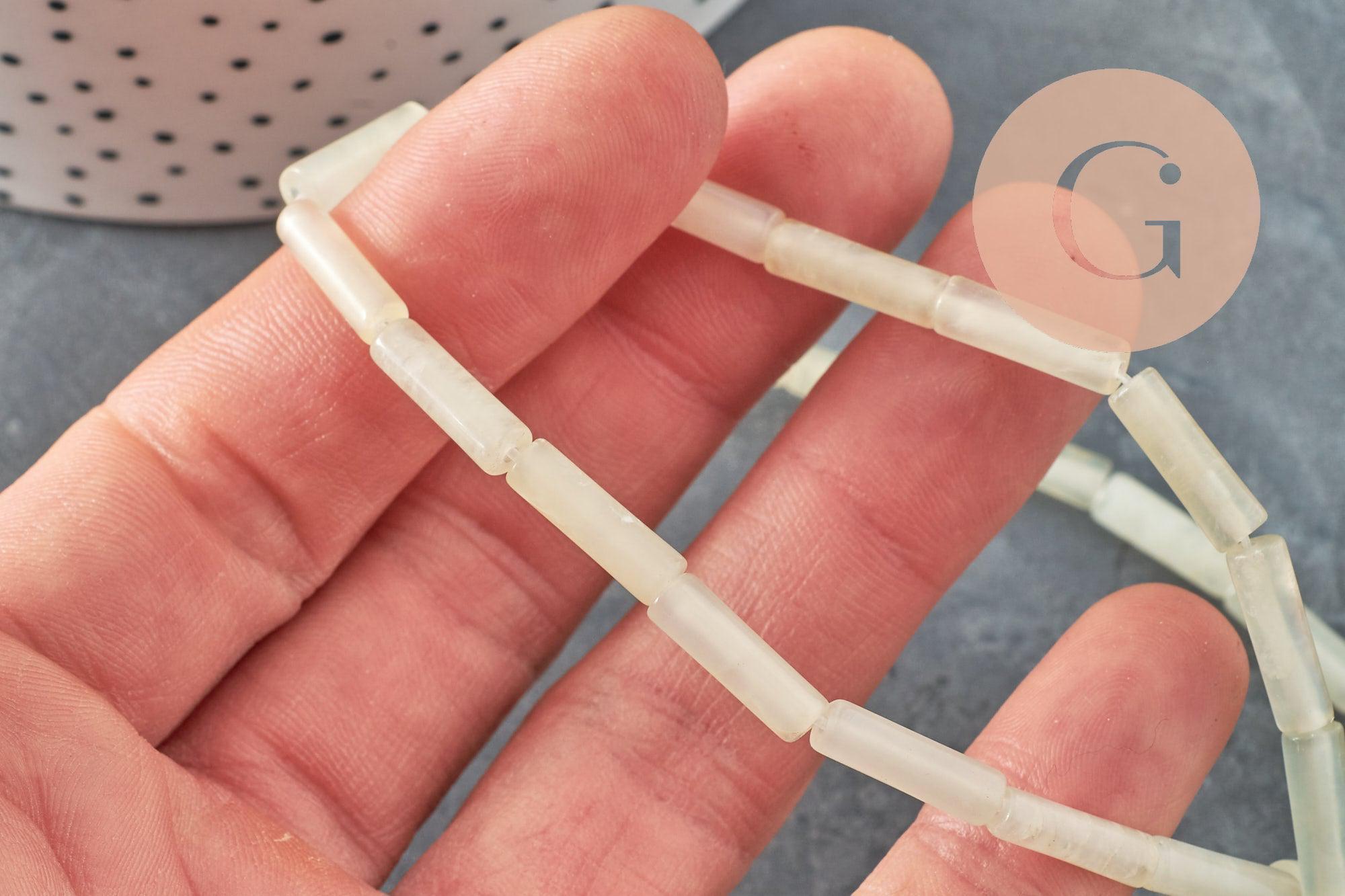 very light green natural jade tube beads, natural stone bead jewelry creation, 13mm, thread of 30 beads