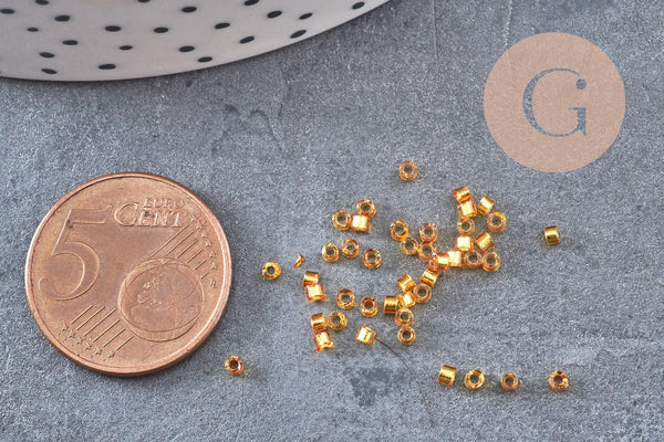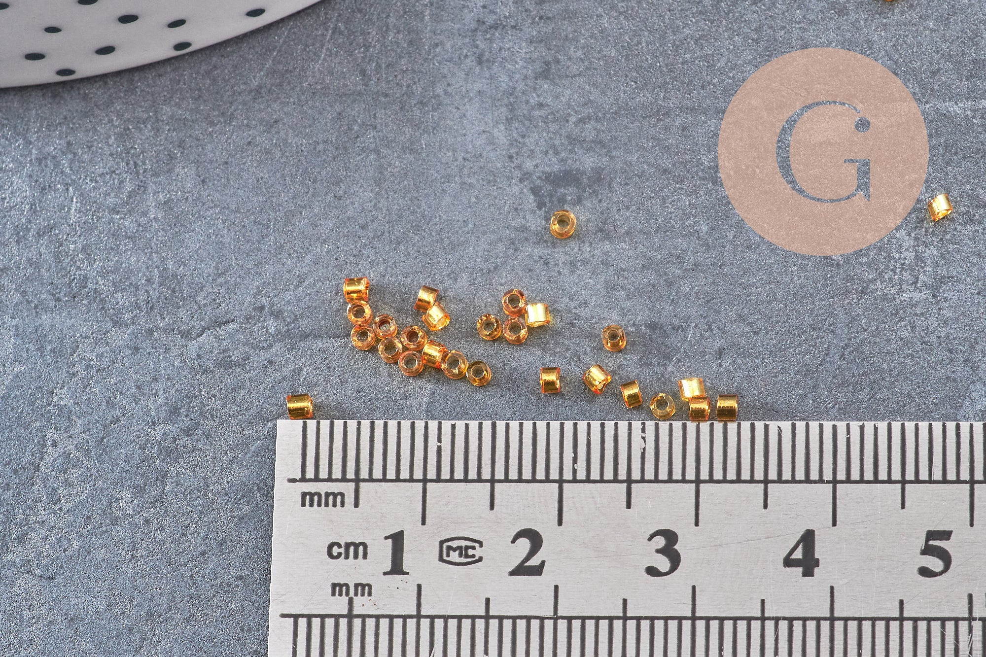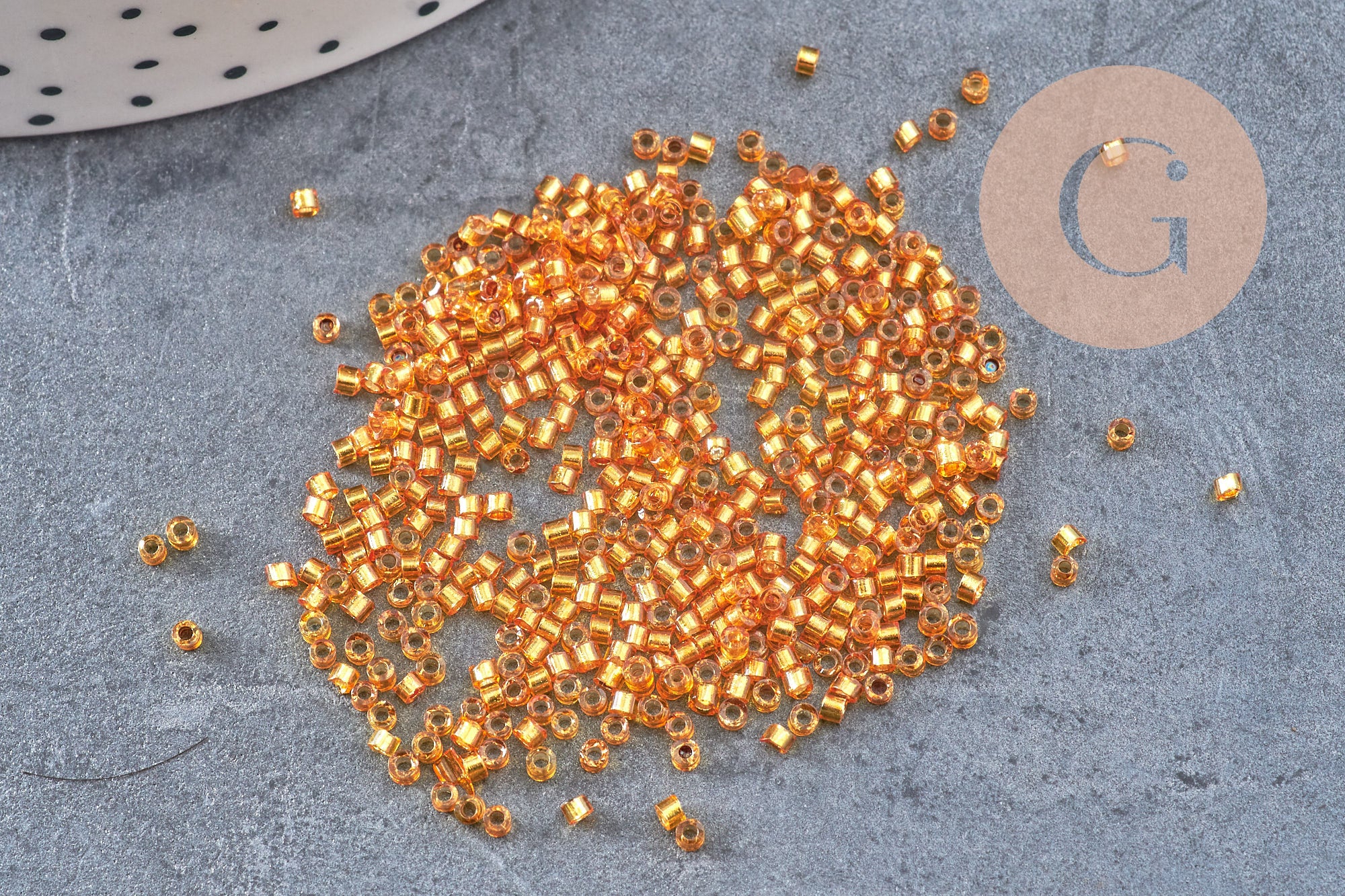 Les perles en verre orange silver line transparent Délica Miyuki sont connues pour être très régulières. Cette régularité vous permettra de les utiliser lors de vos ouvrages sur métiers à tisser ou bien en utilisant les techniques de tissage.