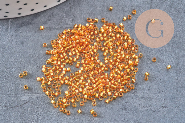 Perles tube verre orange transparent silver line façon Delica miyuki, x1 sachet de 8g (G10923)