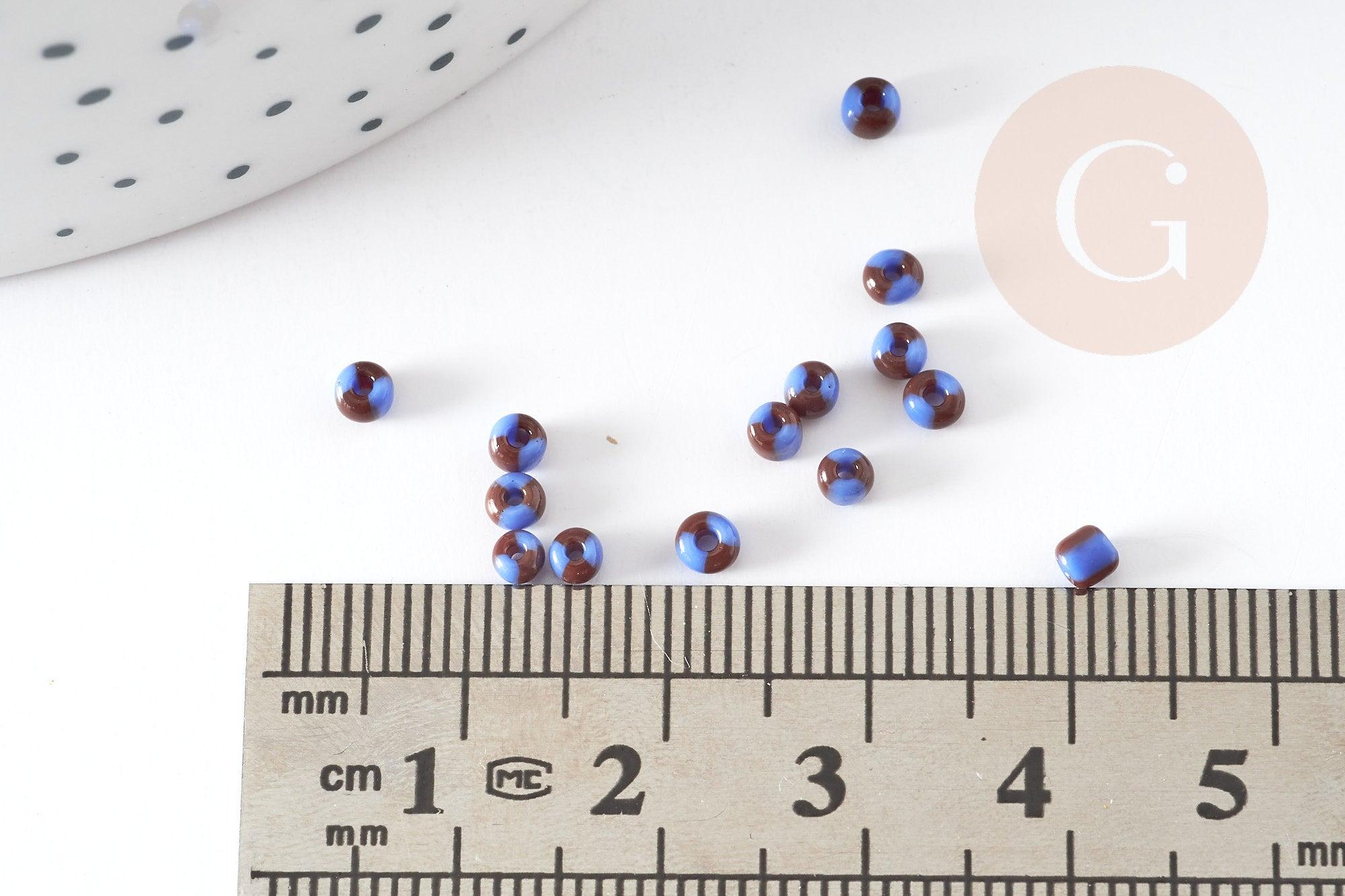 Petite Perle rocaille rayé noir bleu 2.5x3mm, x 10gr (G3675)