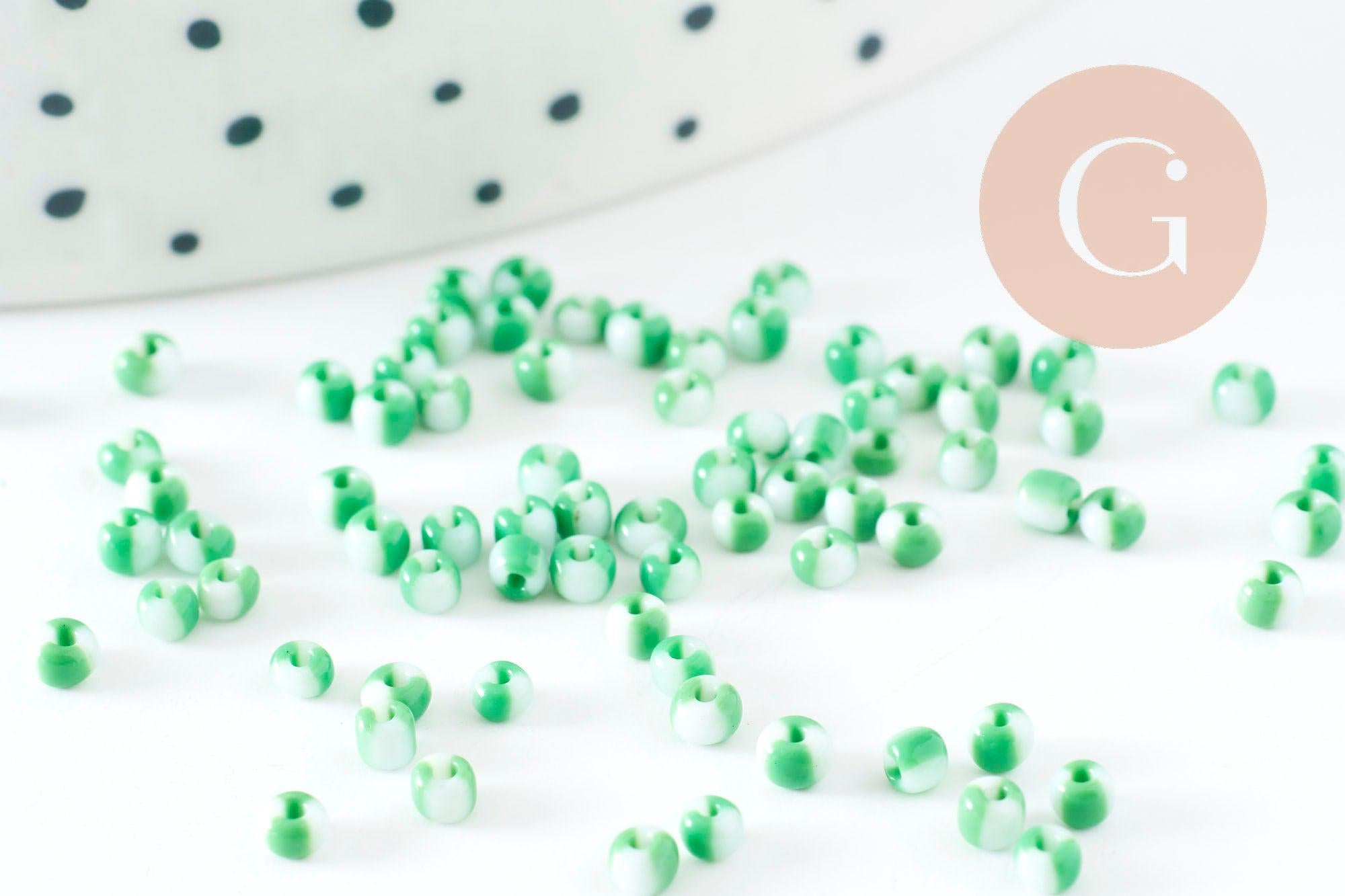 Petite Perle rocaille rayé vert blanc 1.5x2mm, x10gr (G9428)