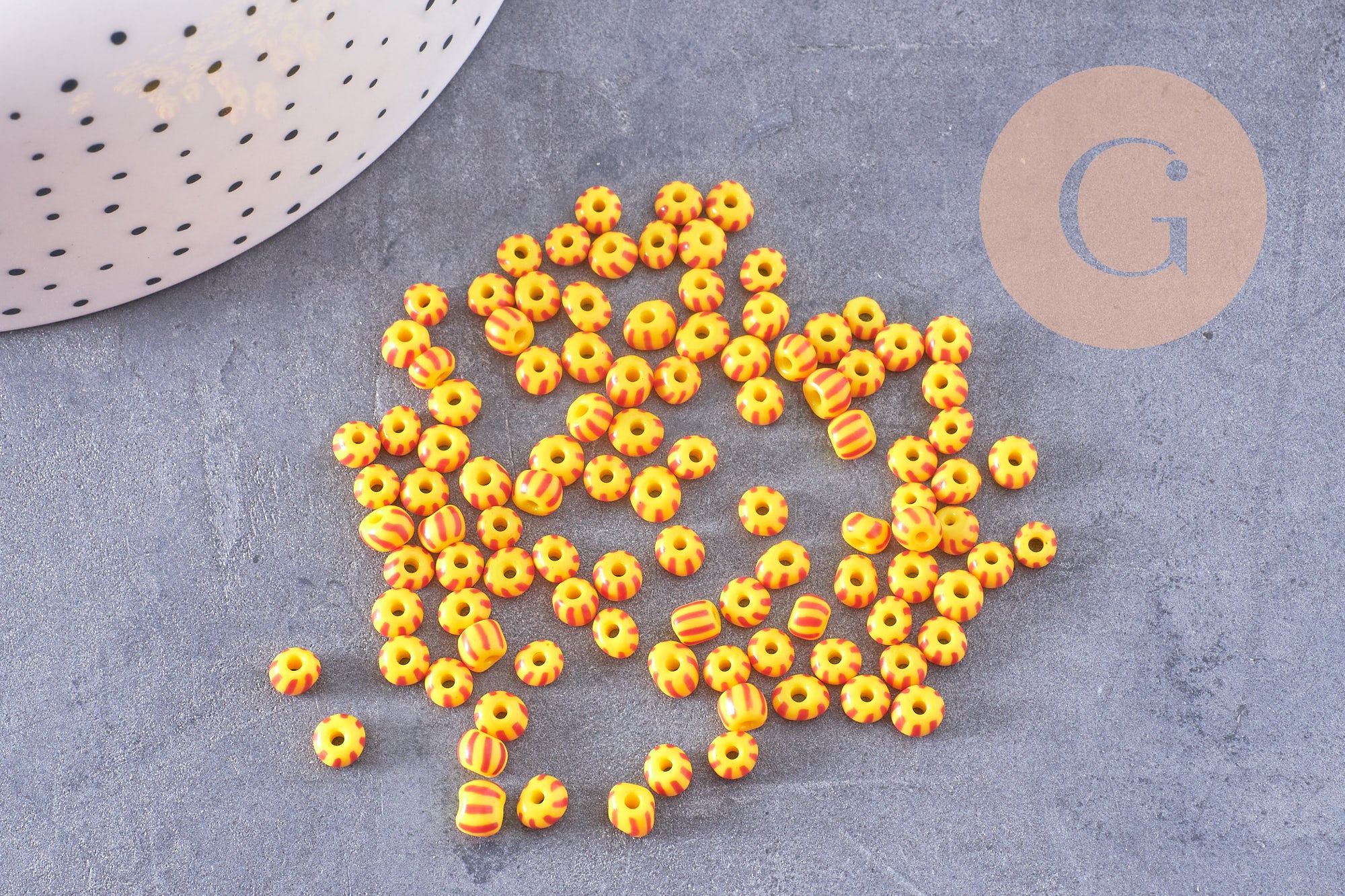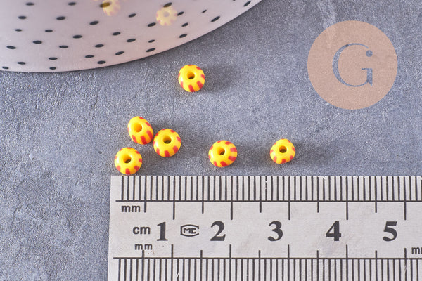 Add a touch of color and originality to your DIY creations with these small glass seed beads, with a yellow and red striped pattern . Their two-tone effect brings relief and light to all your jewelry.