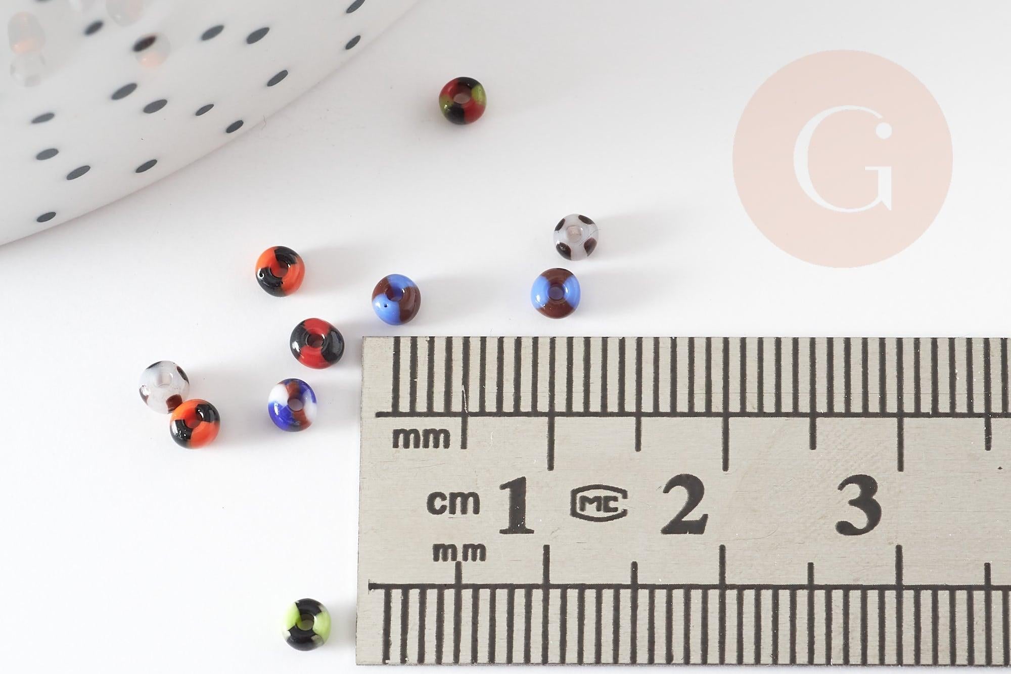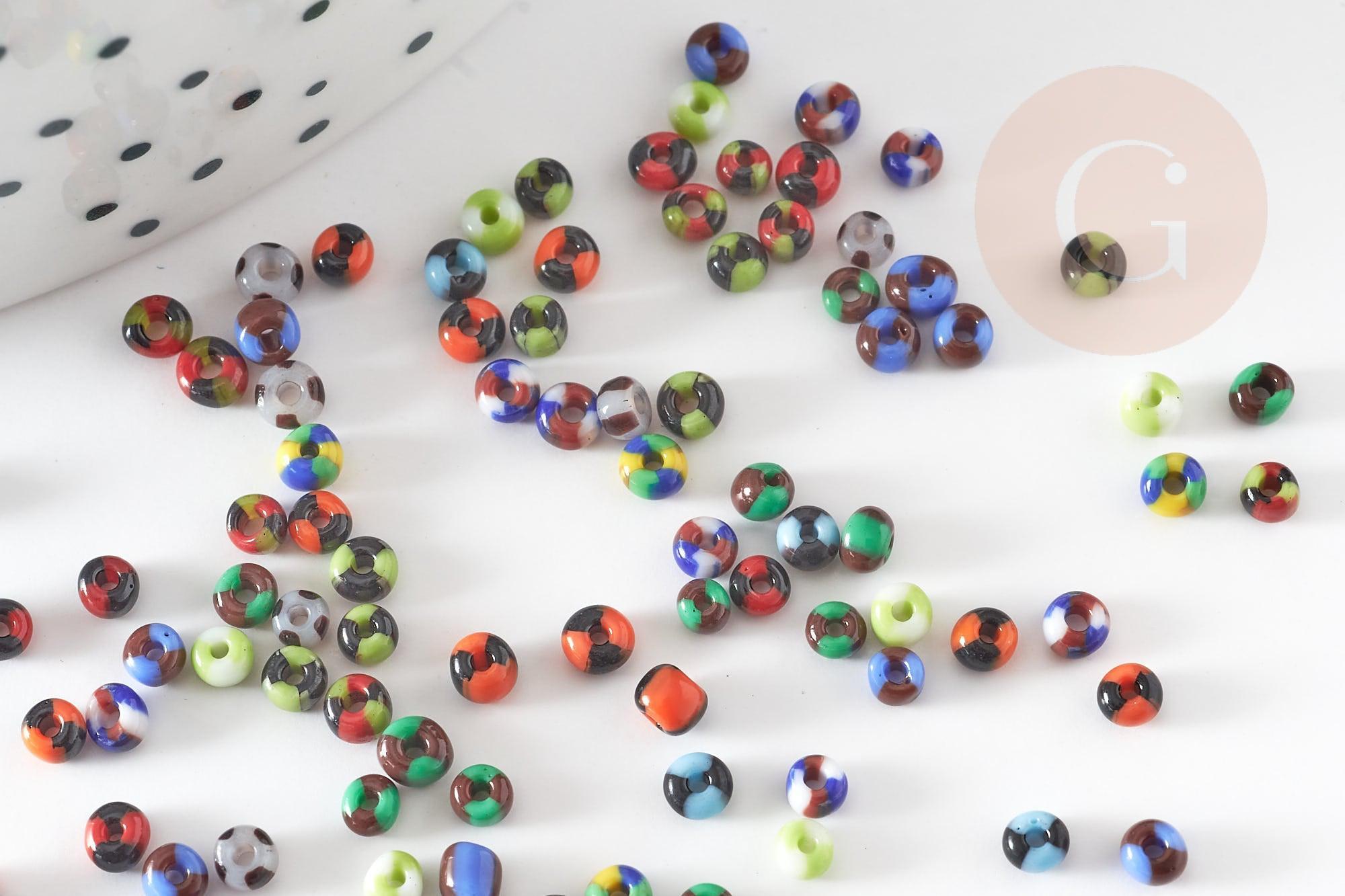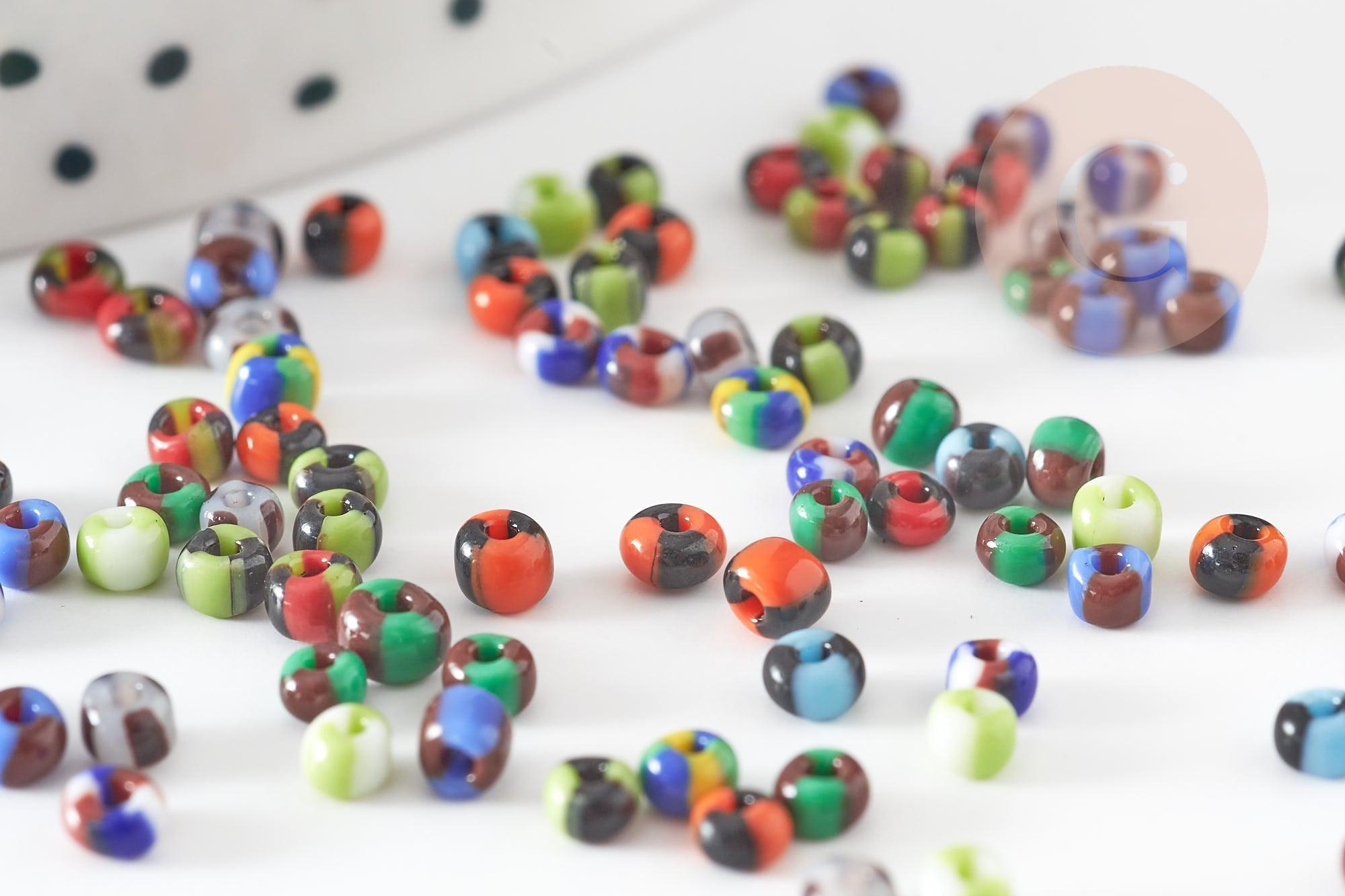 Petites Perles rocaille rayées multicolores 2.5x3mm, x 10gr (G1627)