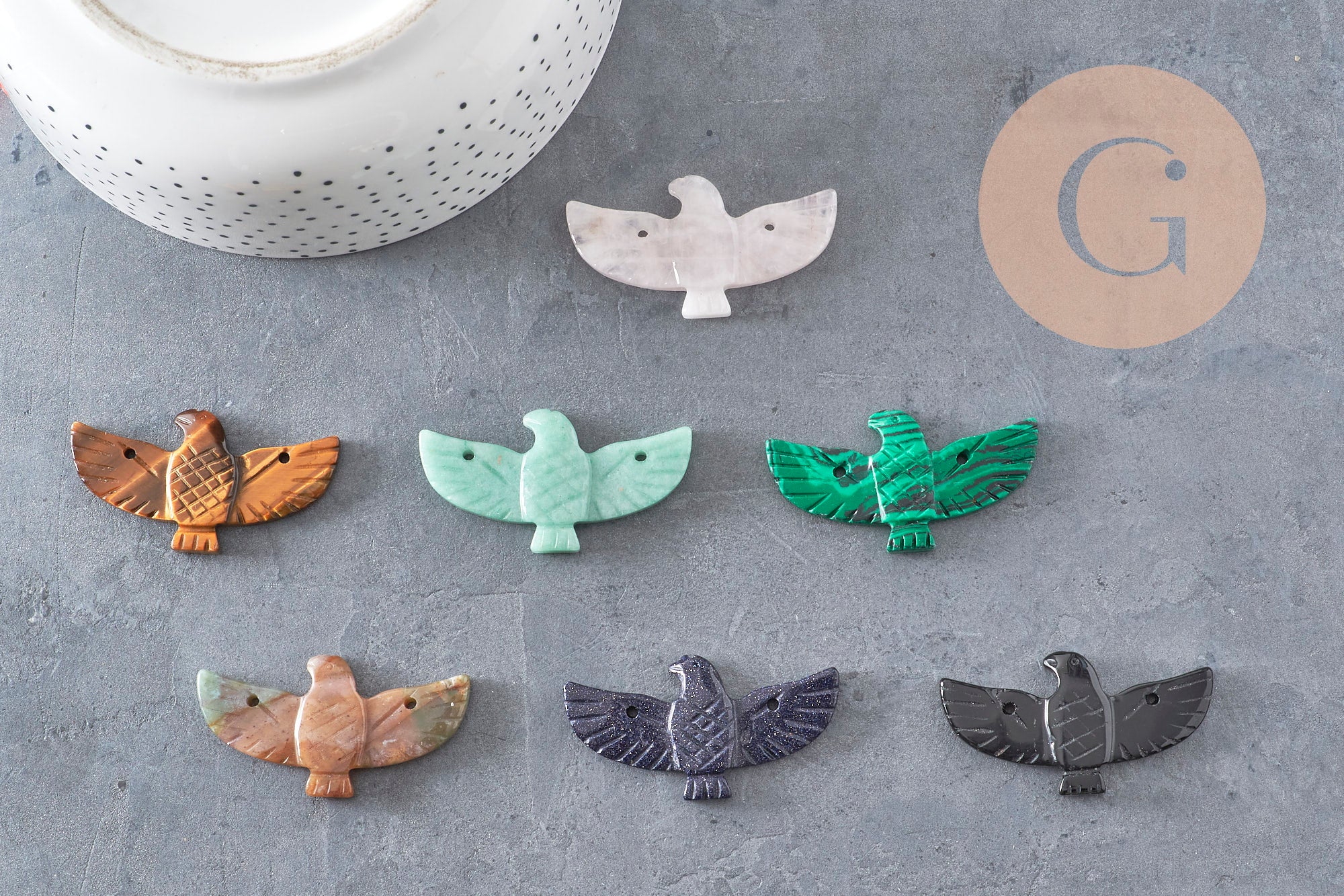 Add power and character to your creations with this sculpted eagle bead , a symbol of strength and freedom. Carved from natural stone , each piece is unique in its nuances and details. At 40mm , it becomes a centerpiece for striking and inspiring DIY jewelry .