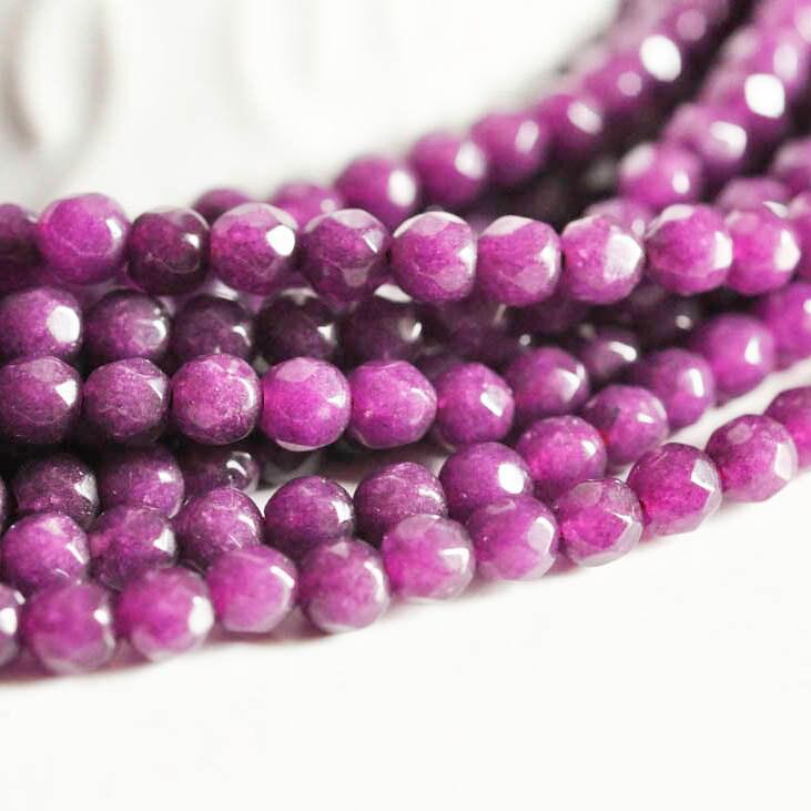 Purple jade bead, creative supply, jade bead, natural stone, natural jade, stone bead, faceted bead, jade, 4mm, thread of 90 beads A strand of approximately 90 faceted tinted jade beads. Diameter 4mm Hole: 1mm 35cm wire Other jade, agate and...