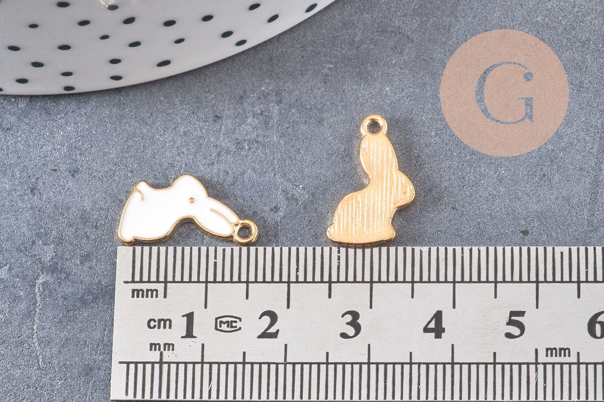 Gold-plated zamac rabbit pendant with white enamel, 17mm, gold-plated pendant for jewelry making, x 5 (G6101)