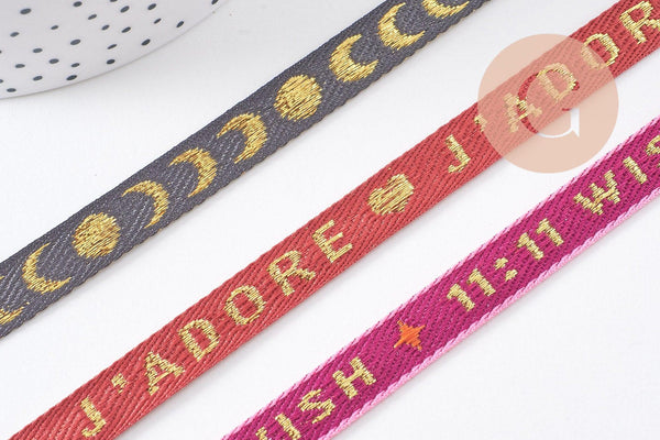 Add a mystical and spiritual touch to your creations with this quality embroidered ribbon , decorated with moons and the number 11:11 , a symbol of synchronicity and spiritual connection.