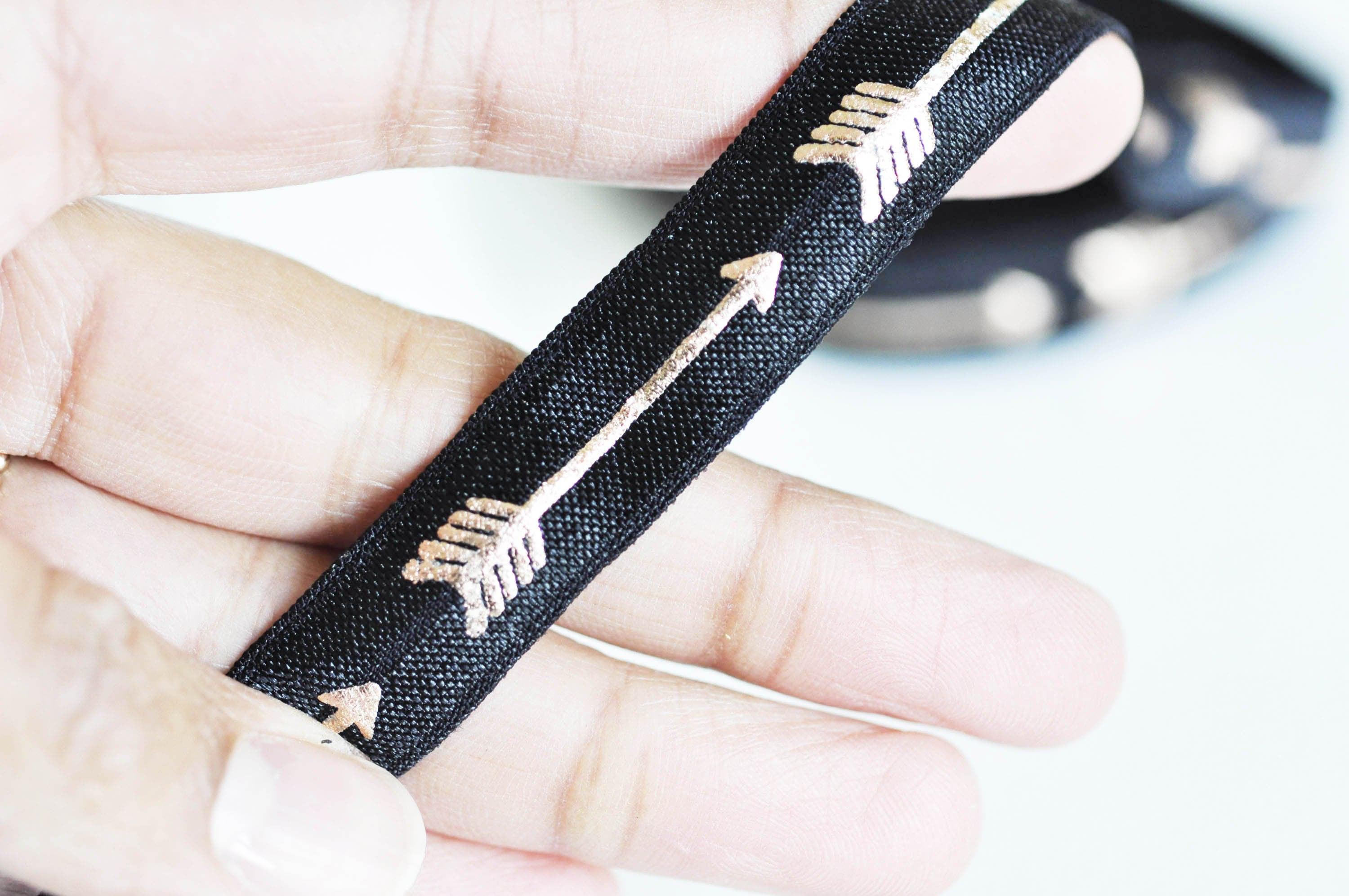 EFJF copper arrow elastic ribbon, jewelry making, EVJF bracelet, wedding ribbon, creative supply, scrapbooking, 16mm, 1 meter-G1573 A magnificent elastic ribbon printed with an arrow in copper-colored hot stamping, an elegant and refined supply for your hen parties, your scrapbooking...