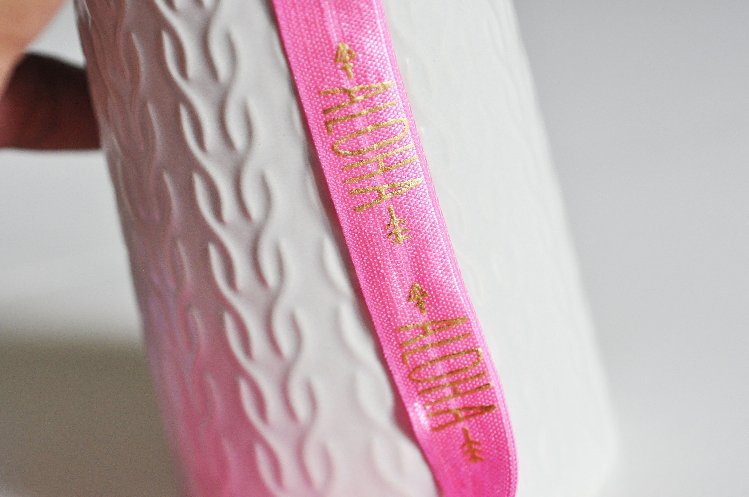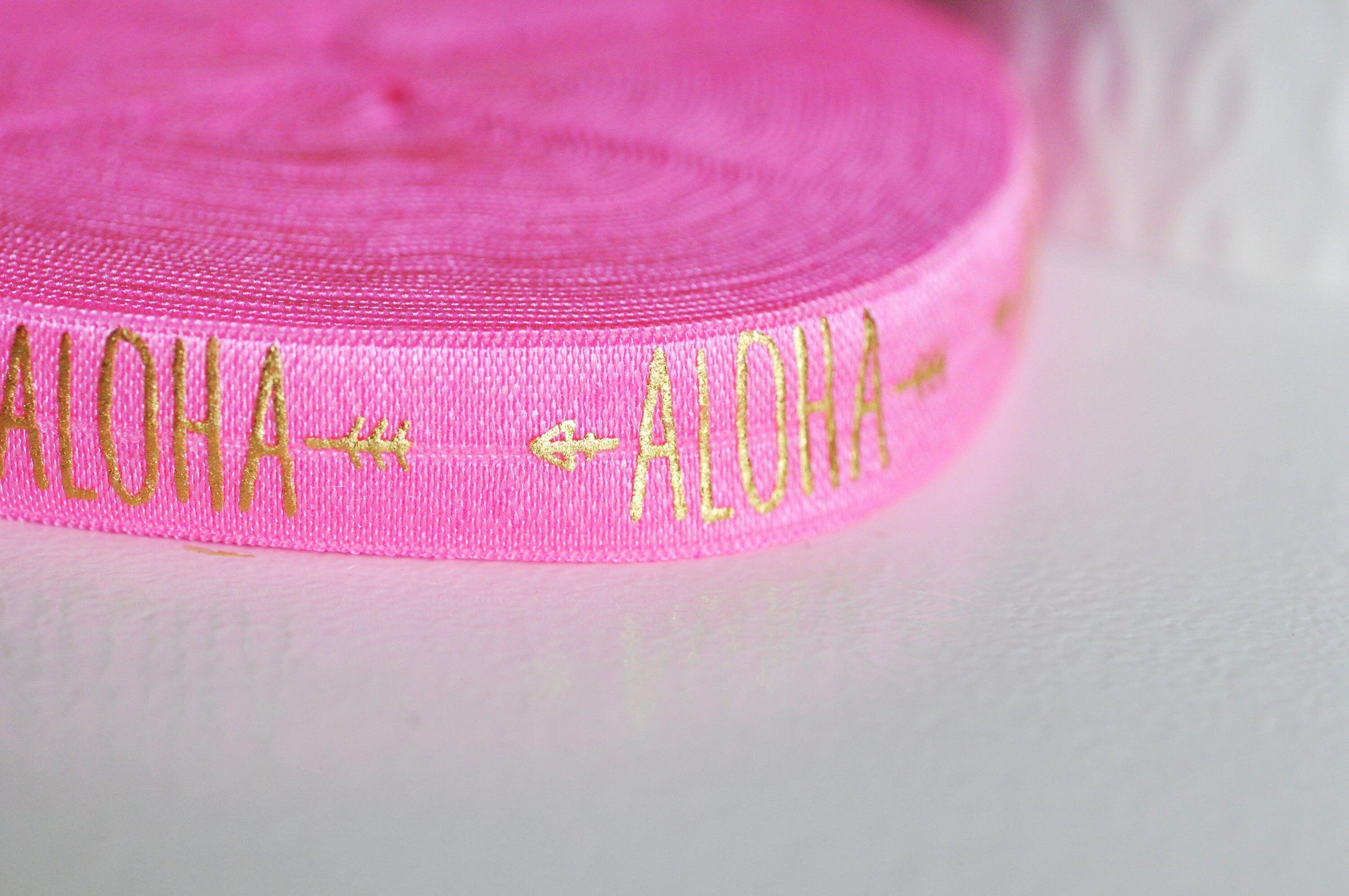 ALOHA EFJF pink gold elastic ribbon, jewelry making, EVJF bracelet, wedding ribbon, creative supply, scrapbooking, 16mm, length 1 meter A magnificent pink and gold elastic ribbon with the writing "ALOHA", an elegant and refined supply for your hen parties, weddings,...