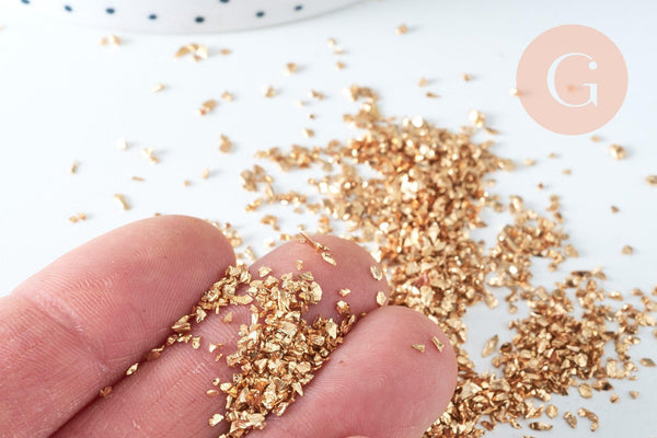 Enhance your DIY creations with this metallic beige pink glass sand chips . Composed of delicate fragments measuring between 2 and 7 mm , these glass shards are perfect for epoxy resin and Jesmonite creations, as well as for jewelry or craft decoration projects .