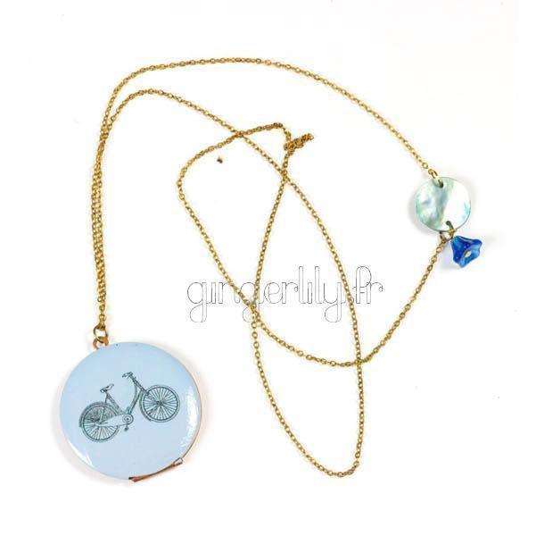 An original and retro Bicycle necklace from Azucar Gingerlily falls for the new collection from the creator of Azucar Jewelry. A slightly retro feminine piece of jewelry, composed of an enameled brass photo-holder medallion screen-printed with a bicycle on a...