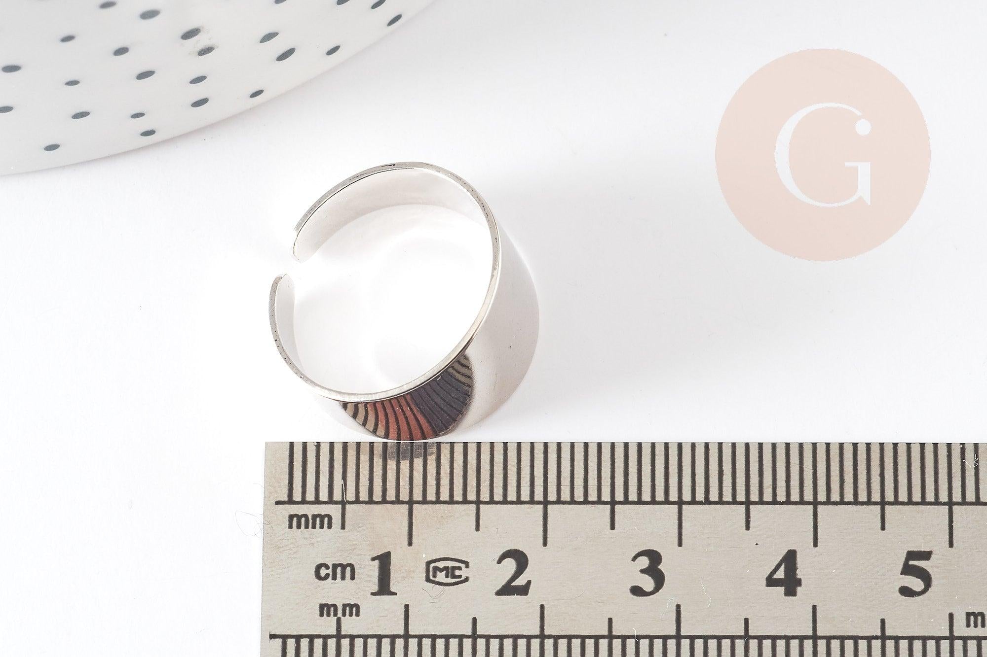 Adjustable ring support in white gold-plated brass, creative supplies, rhodium-plated ring, wide ring, rhodium primer, 16mm