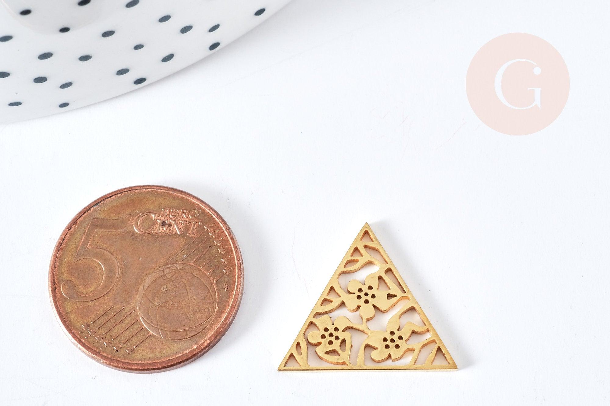 Pendentif triangle fleuri acier doré 17mm, breloque doré, acier inoxydable doré, pendentif sans nickel, création bijoux, x1 (G5925)