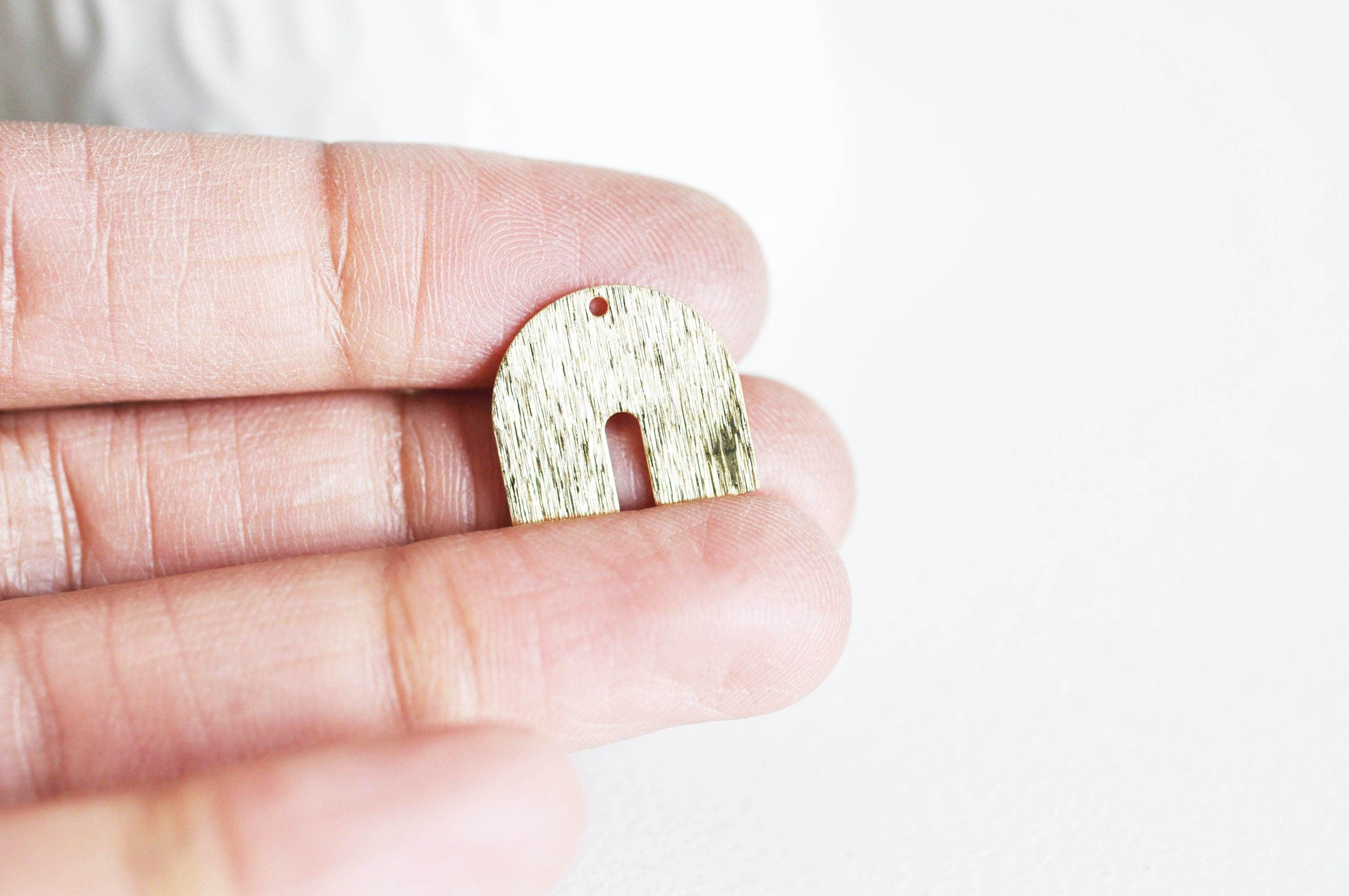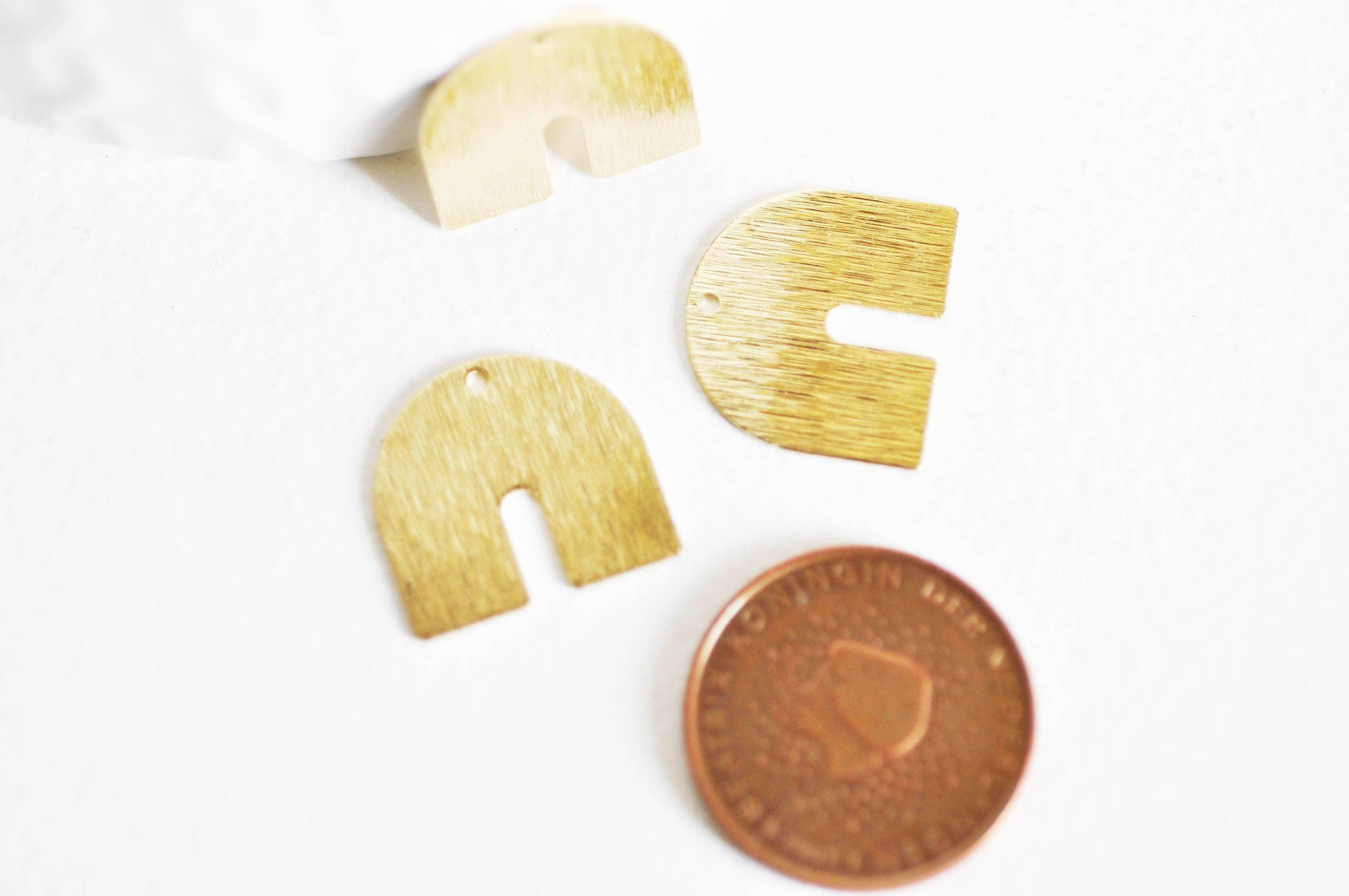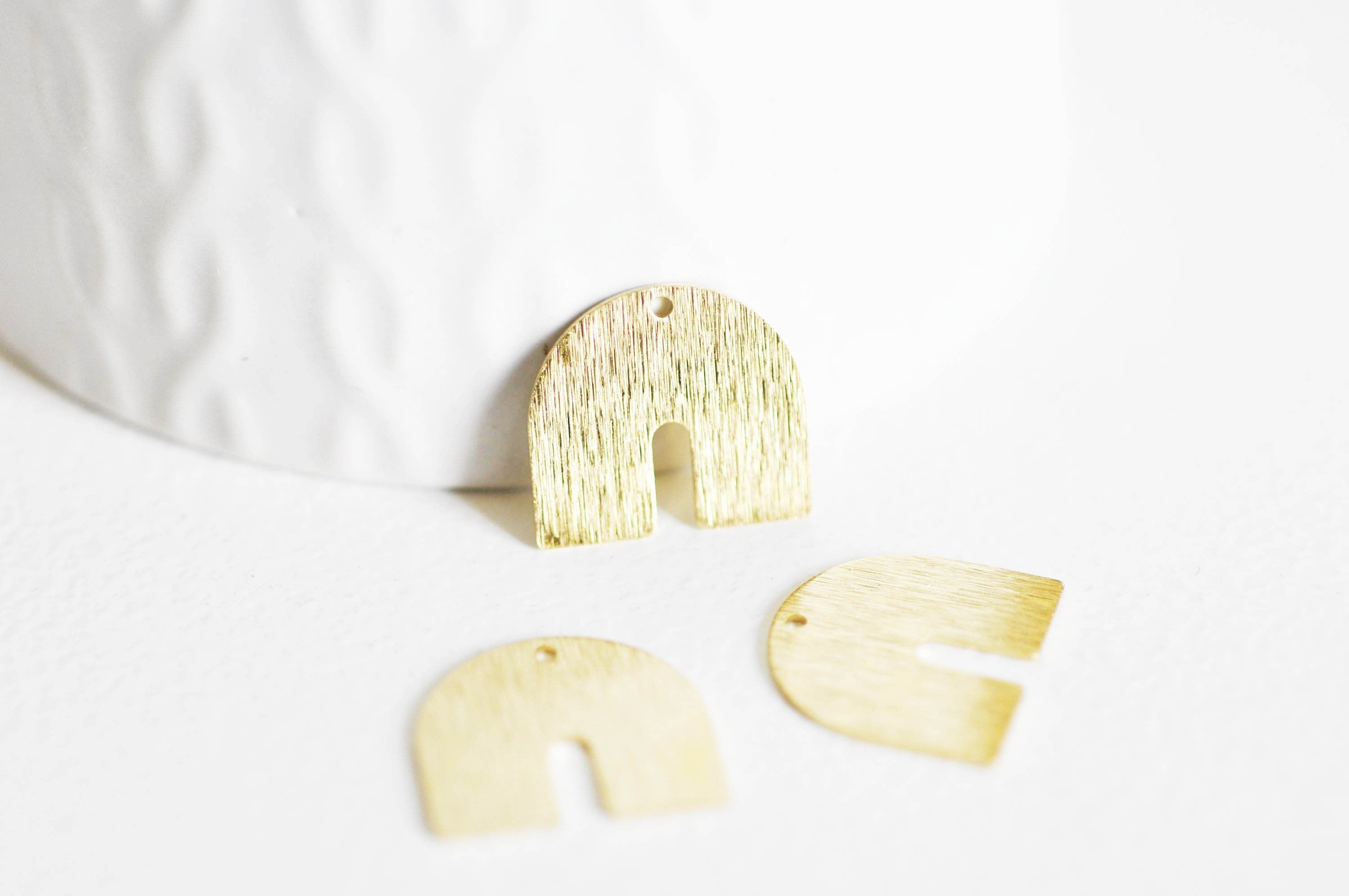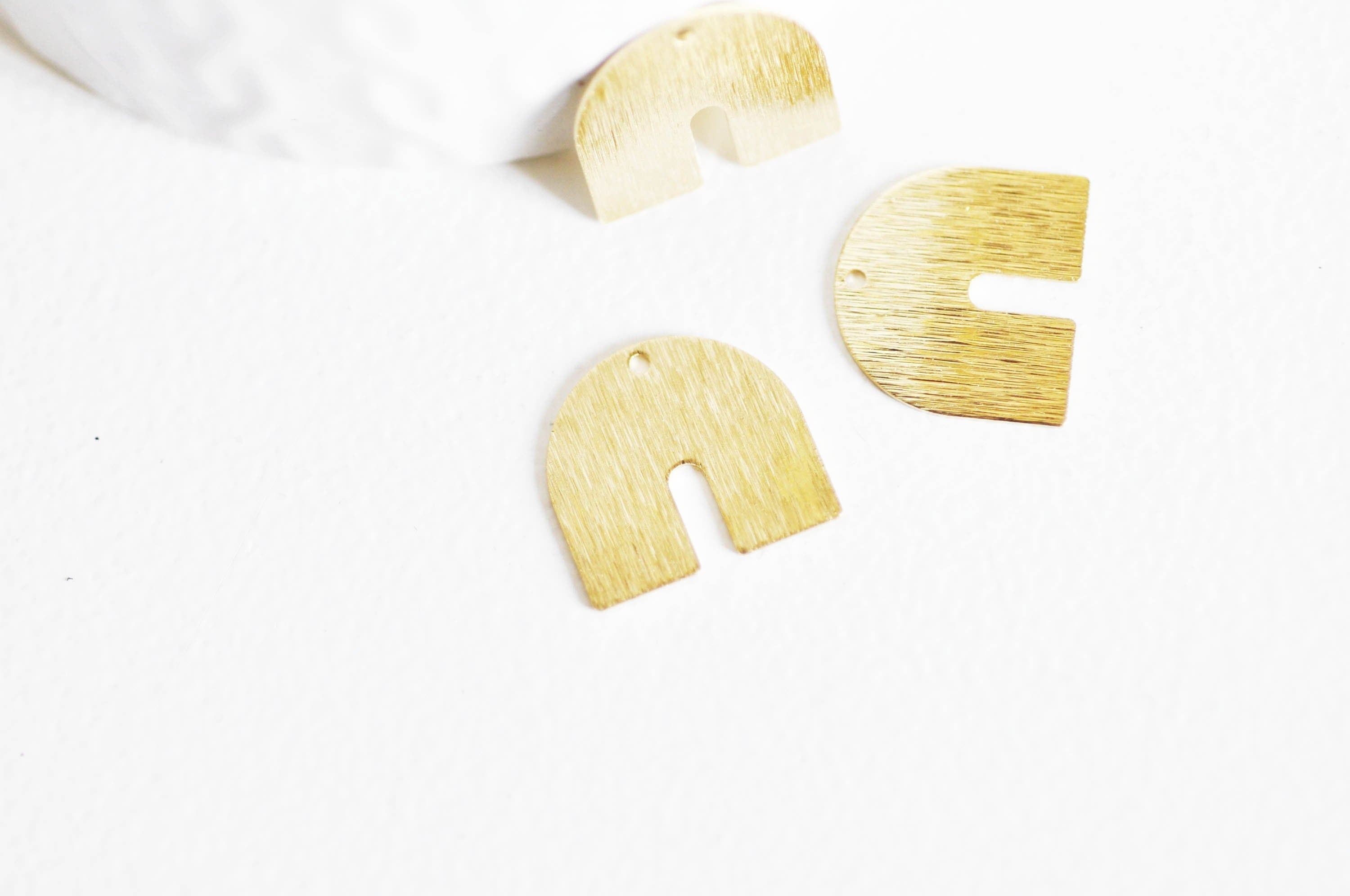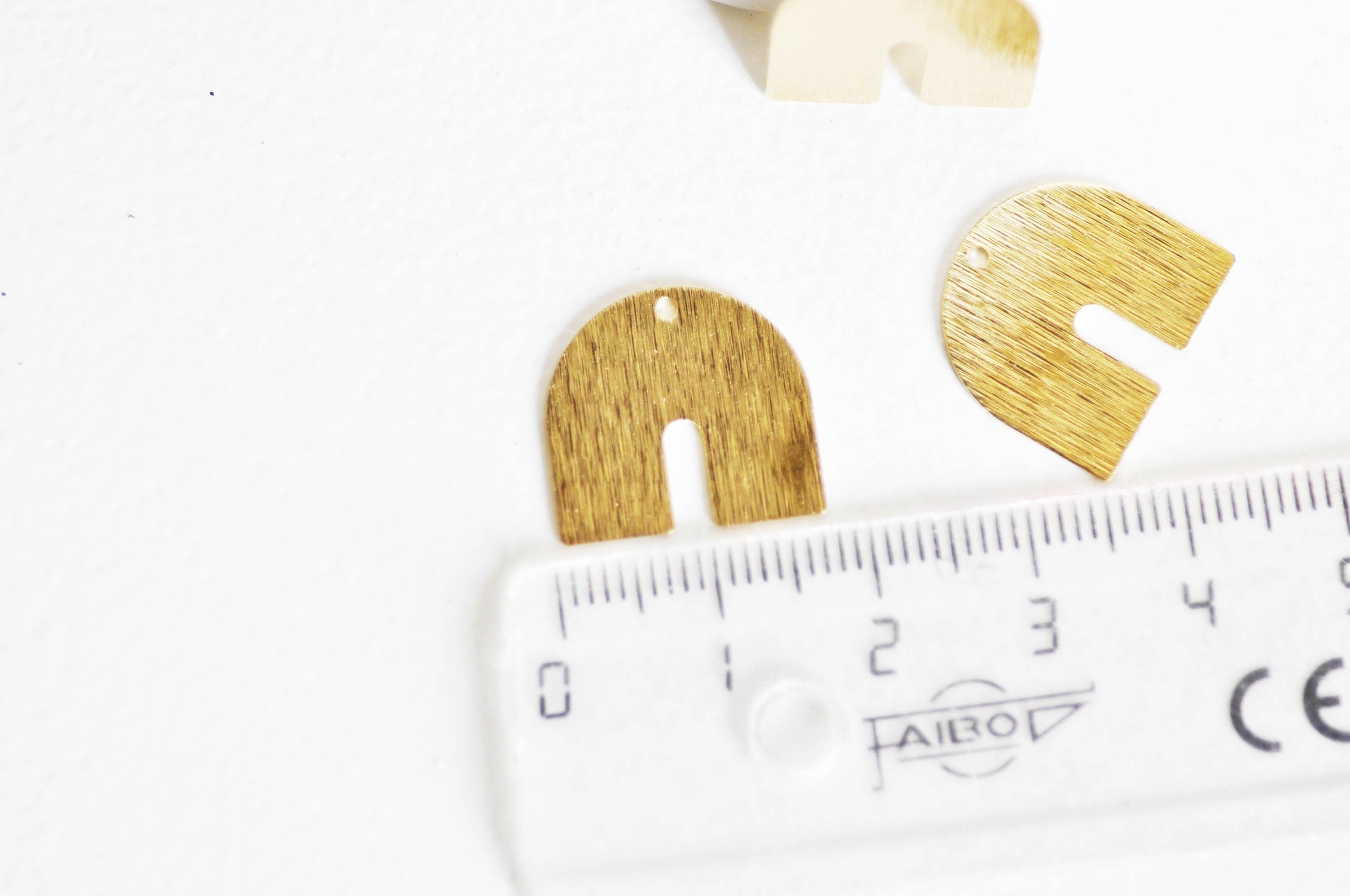 U semi-circle arc pendant in brushed raw brass, gold-plated finish, nickel-free, gold-plated medal, raw brass, square medal, 16mm, set of 2 An original U-shaped pendant, textured and brushed in raw brass, ideal for making your earrings, necklaces and necklaces in...